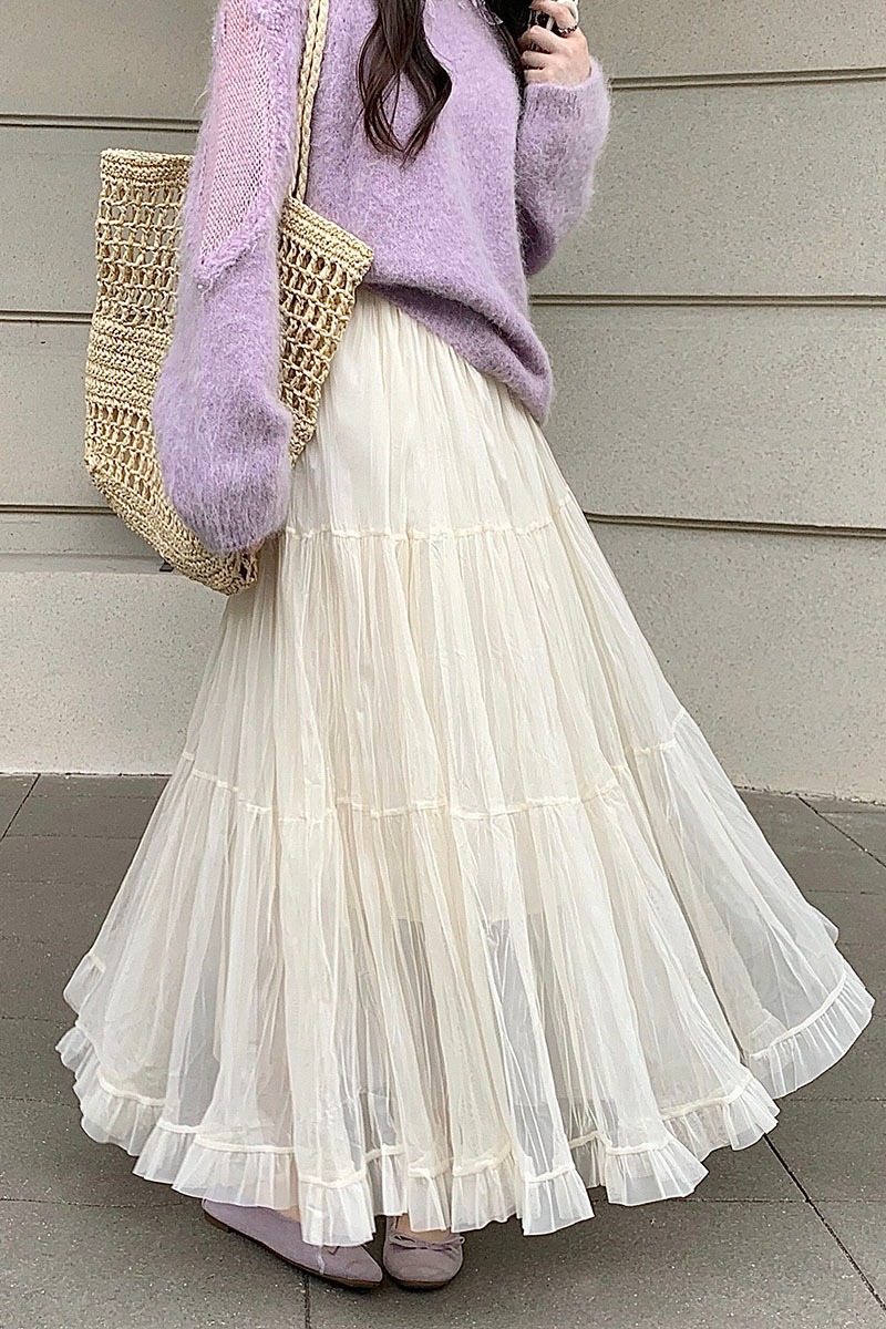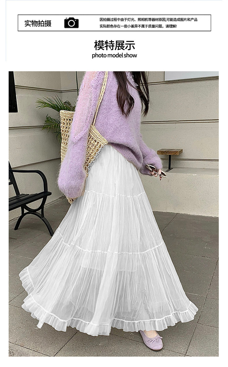 화이트 반신 스커트 여성 2026 봄 여름 새로운 달콤한 스타일 층 케이크 드레스 캐주얼 도루 센스 한 마디 큰 진자 롱 스커트
