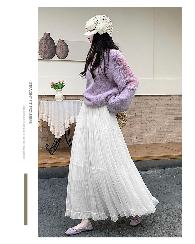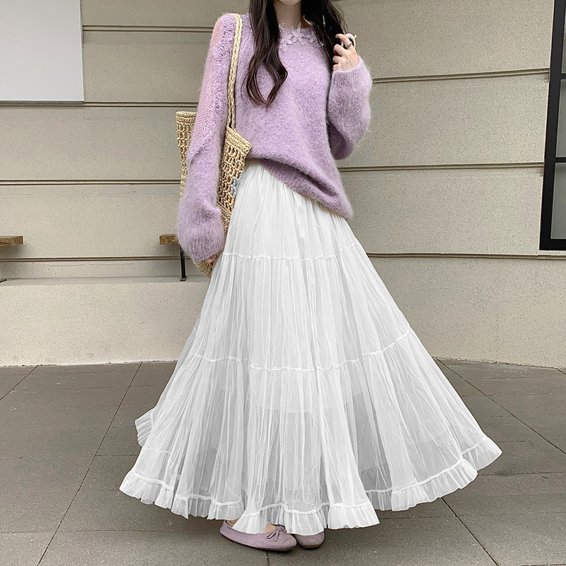 달콤함 레이스 레이스 패치워크 케이크 드레스 망사 반신 스커트 여성 롱 코트 하이웨이스트 한 마디 퍼프 스커트 품격 롱 스커트