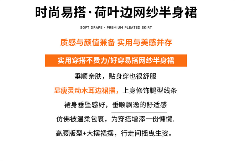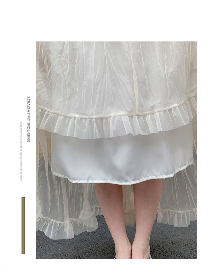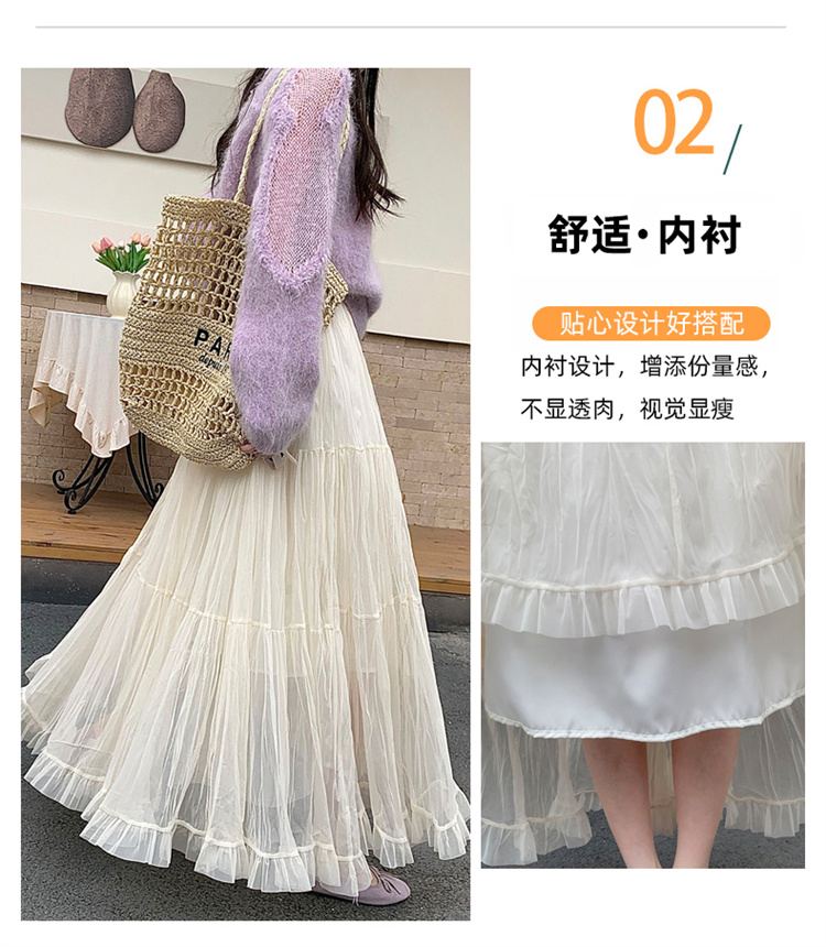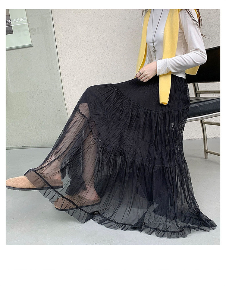 우아한 큰 진자 주름 질감 센스 망사 반신 스커트 여성 여름 얇은 스타일 패션 한 마디 프릴 케이크 드레스