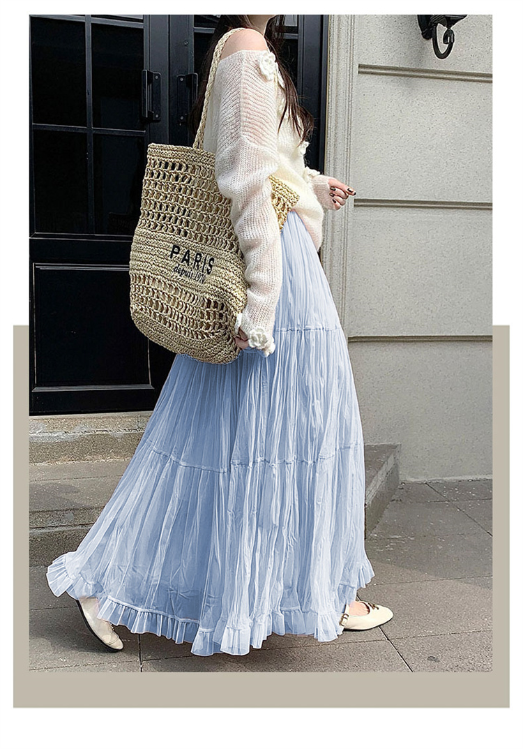 한 부서 프릴 주름 달콤함 반신 스커트 휴가 사진 찍기 롱 스커트 분위기 센스 봄 여름 부서 치마