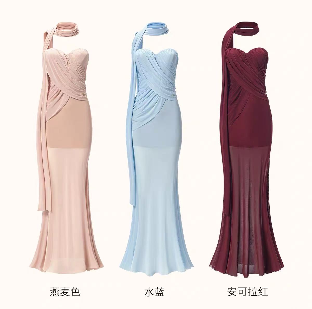 순수한 욕망 빛 럭셔리 명문 여성 섹시함 튀김 거리 품격 백리스 슬립 주름 타이트 스커트 점프 슈트 치마 검정색 작은 드레스 롱 스커트