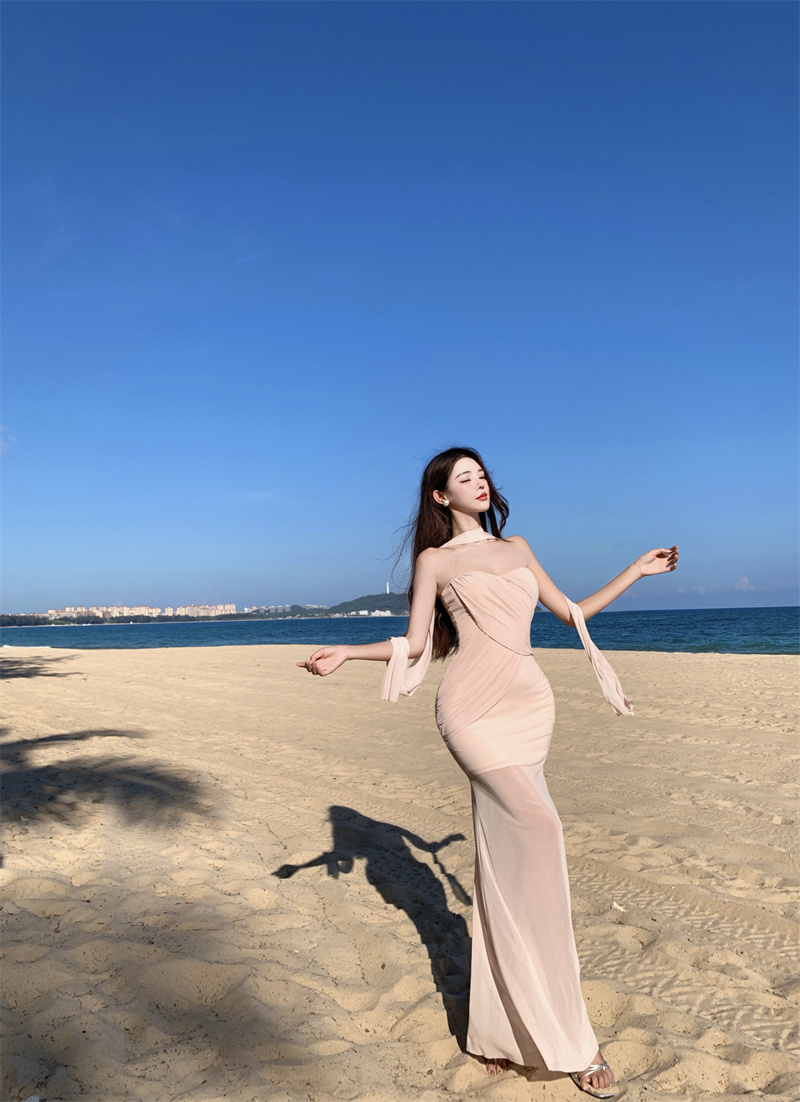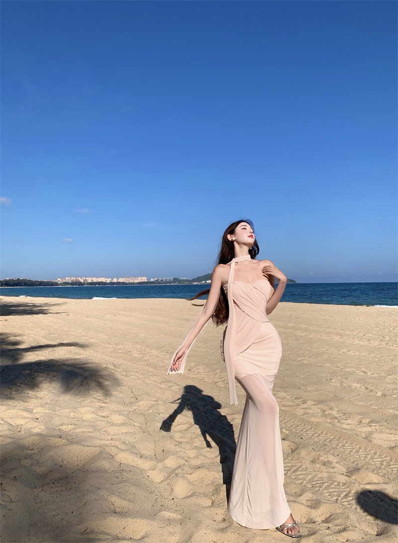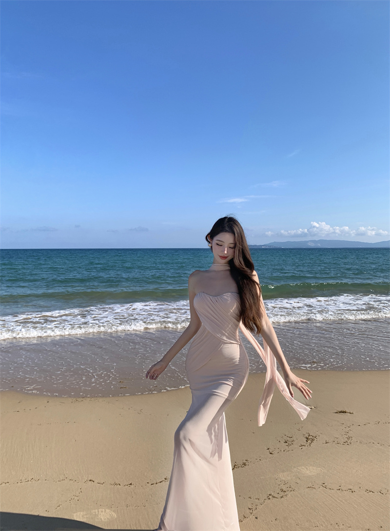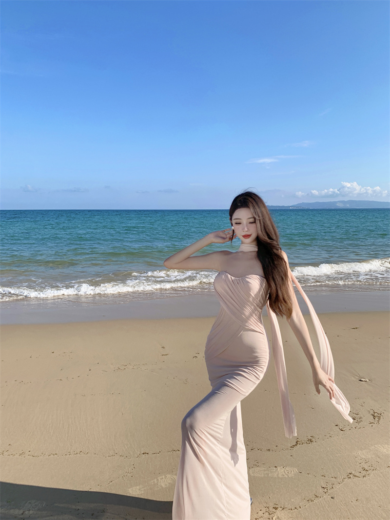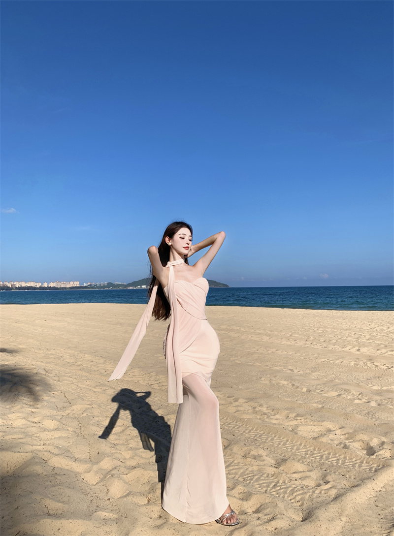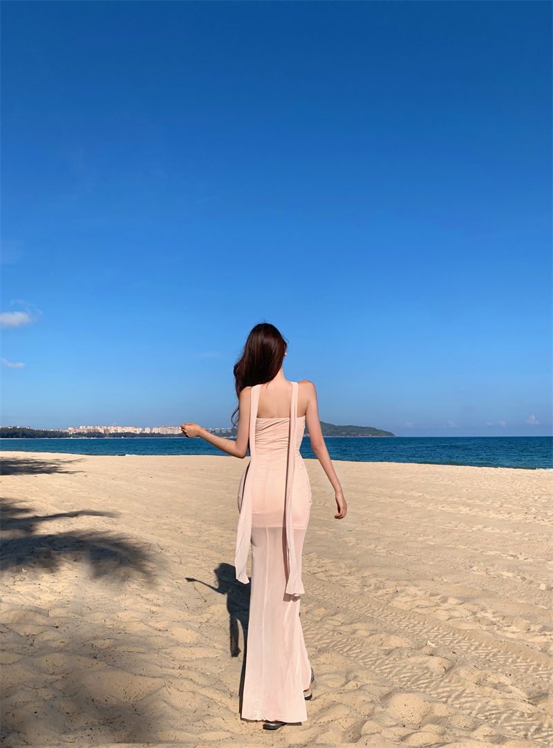 프랑스식 핫걸 순수한 욕망 바람 센스 백리스 슬립 여성 드레스 여름 새로운 품격 허리 수축 슬림해 보이는 큰 진자 롱 스커트
