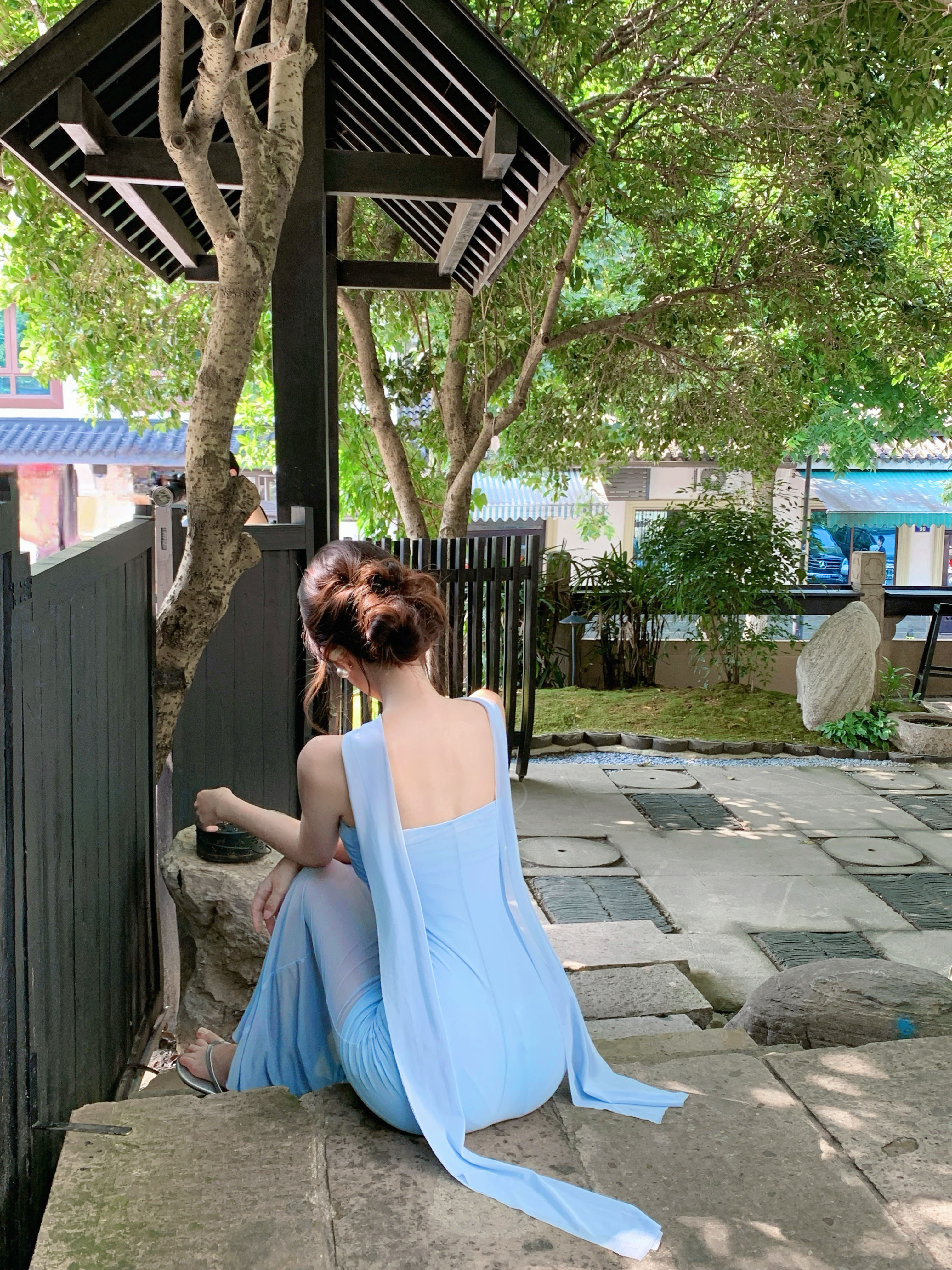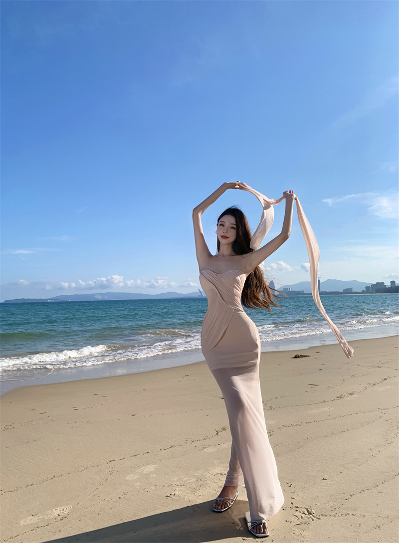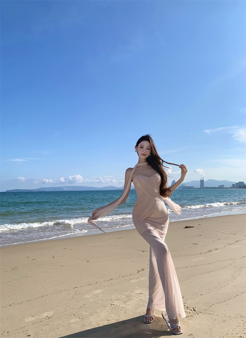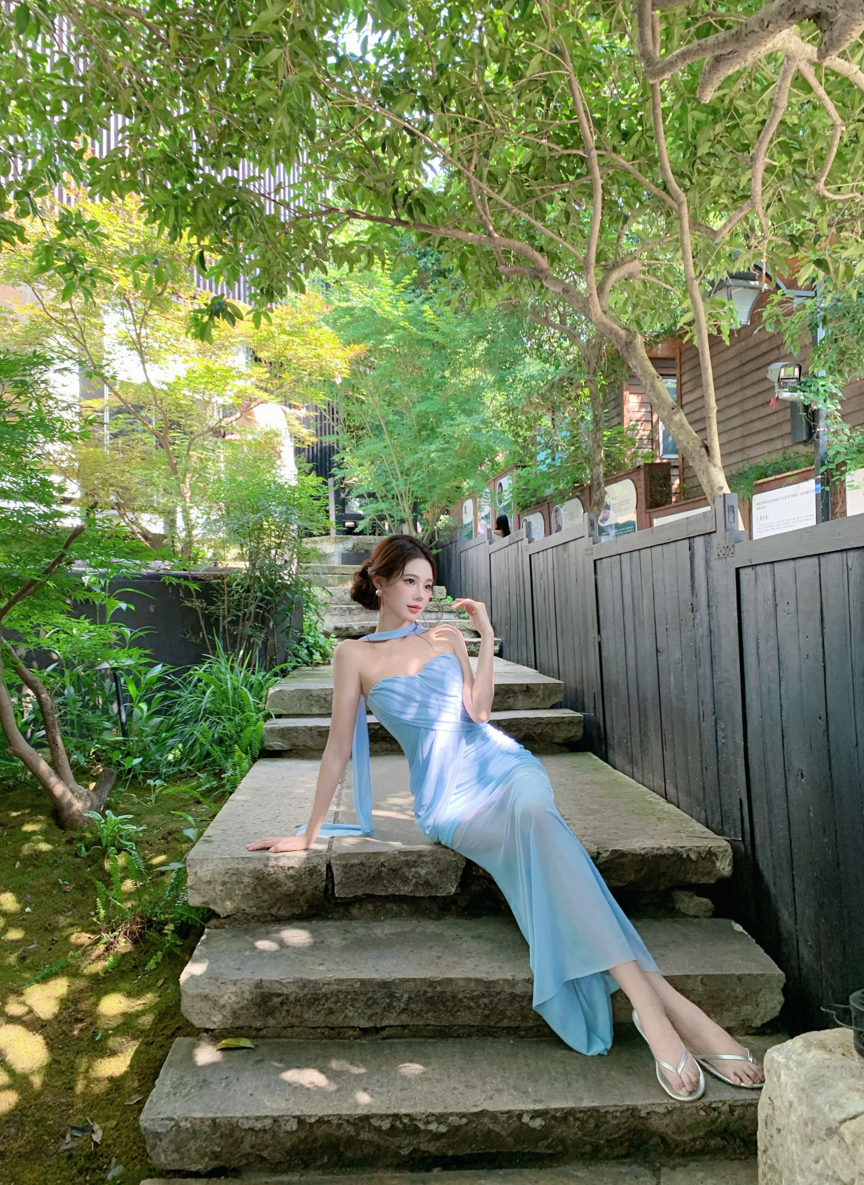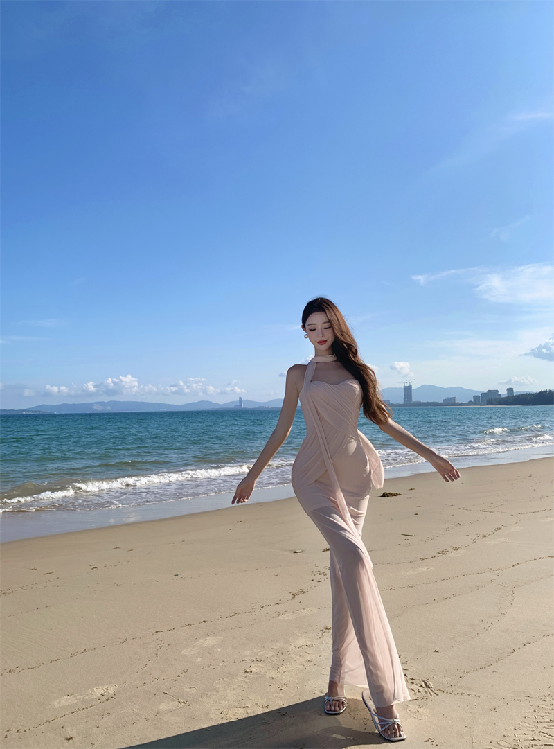 프랑스식 핫걸 순수한 욕망 바람 센스 백리스 슬립 여성 드레스 여름 새로운 품격 허리 수축 슬림해 보이는 큰 진자 롱 스커트