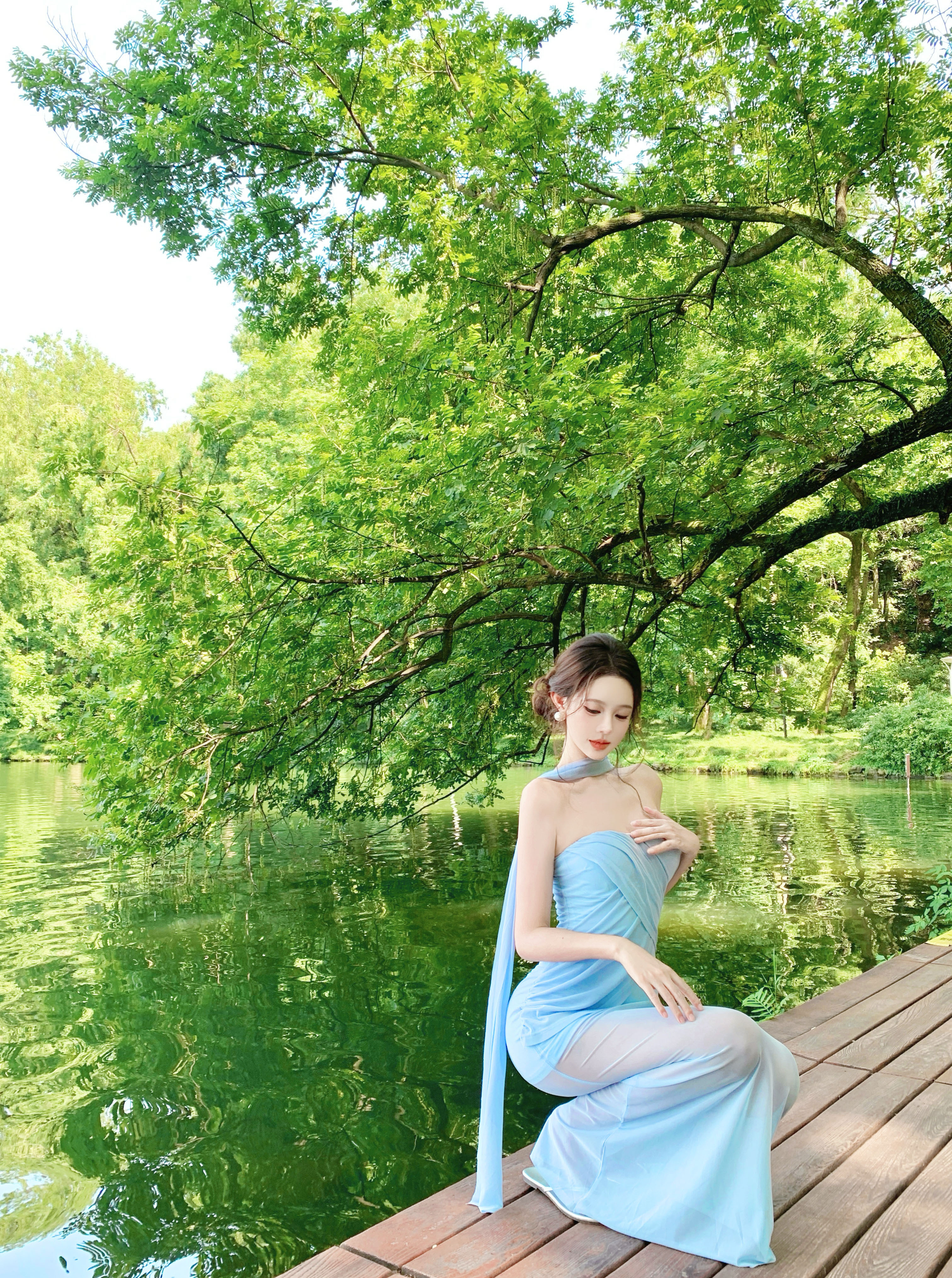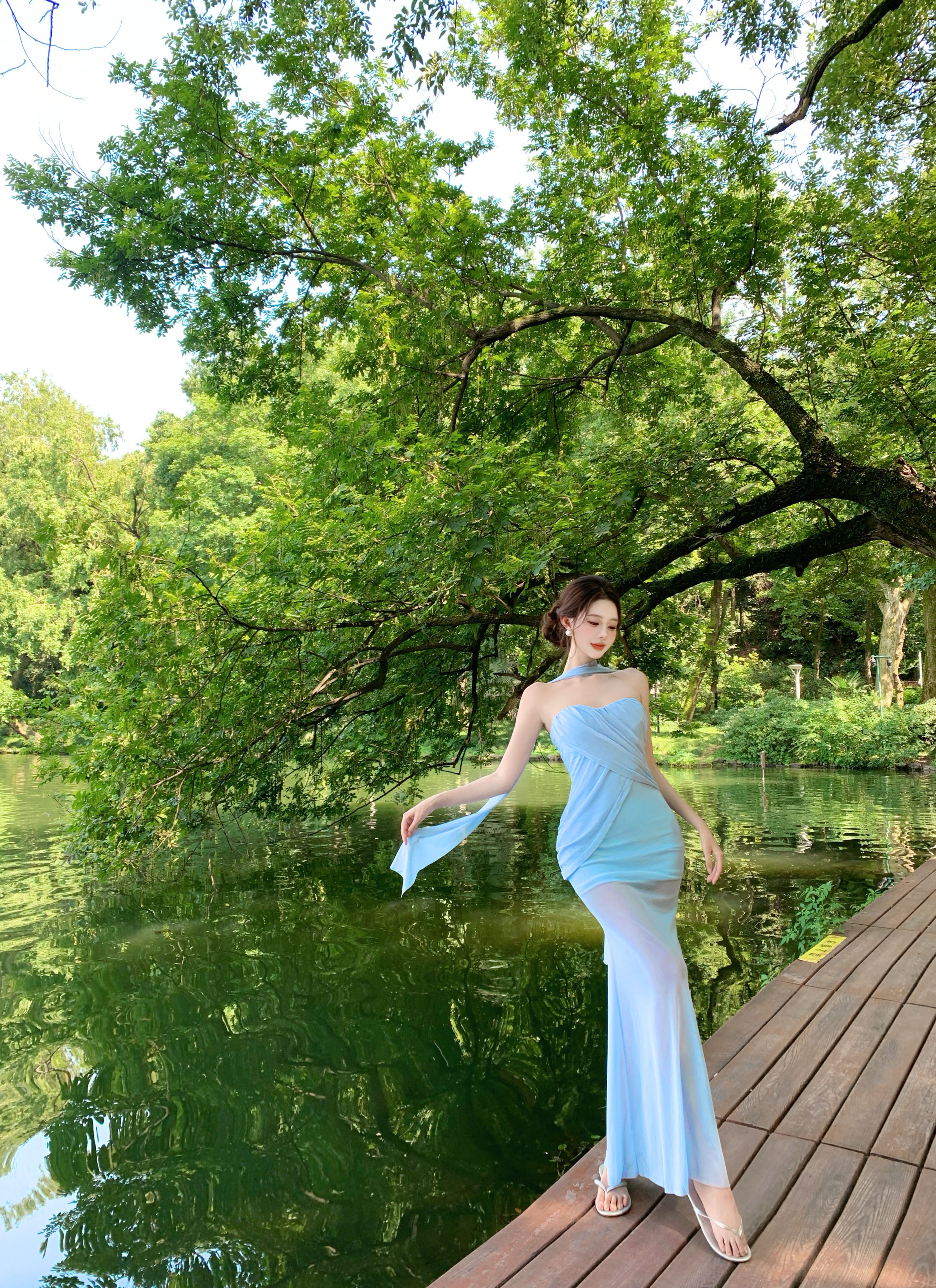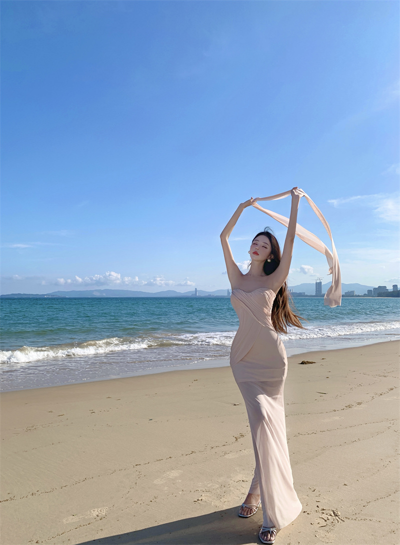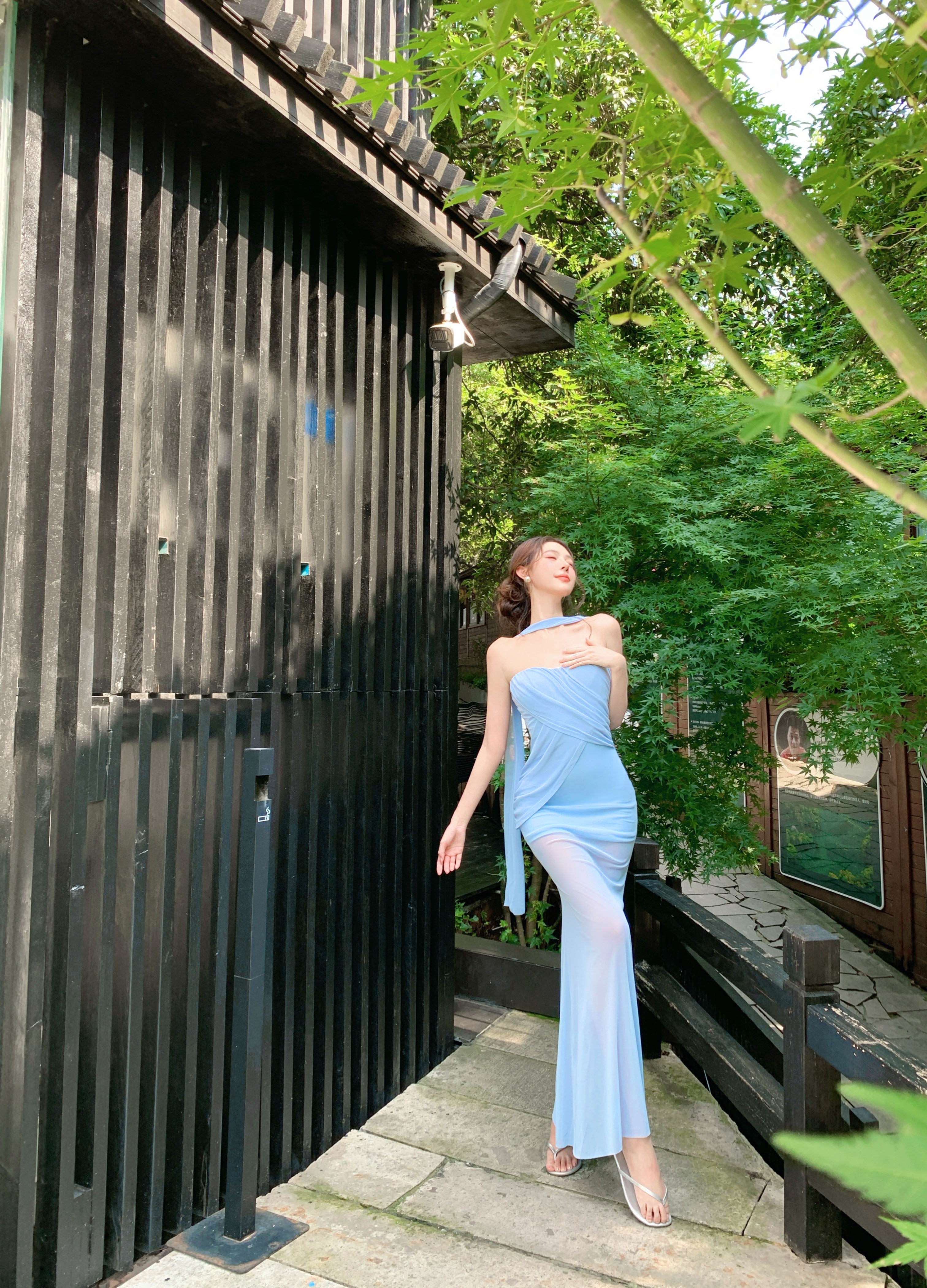 프랑스식 핫걸 순수한 욕망 바람 센스 백리스 슬립 여성 드레스 여름 새로운 품격 허리 수축 슬림해 보이는 큰 진자 롱 스커트
