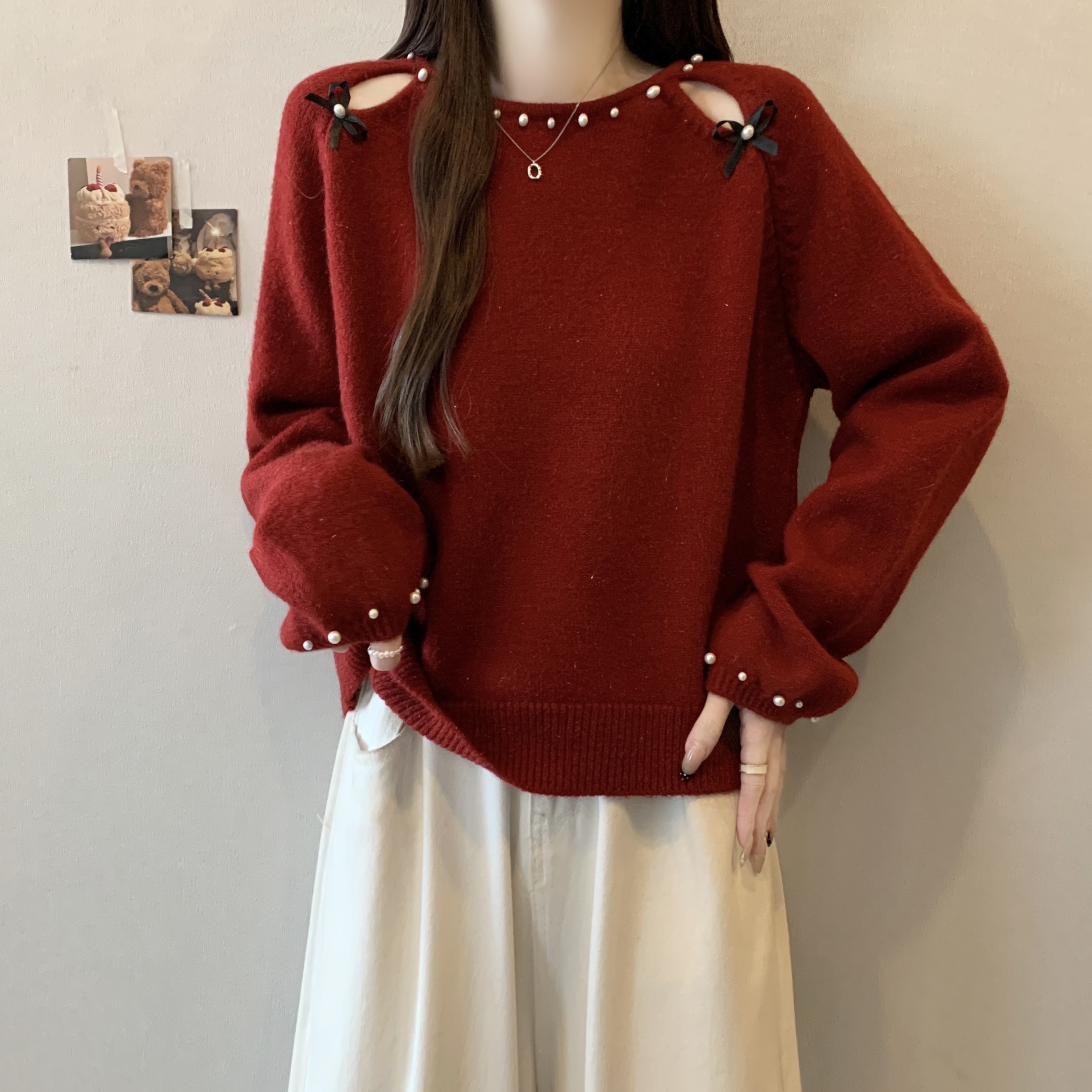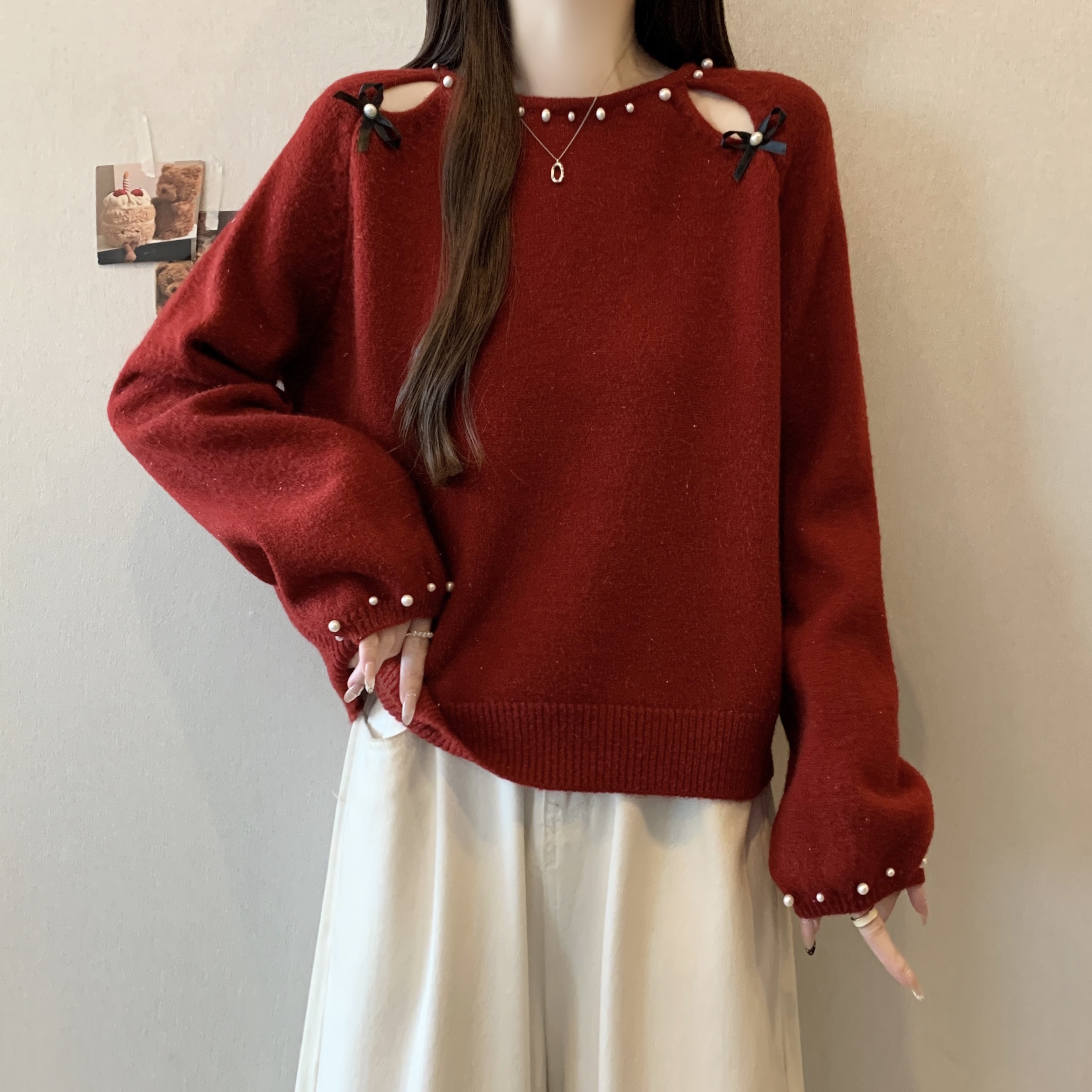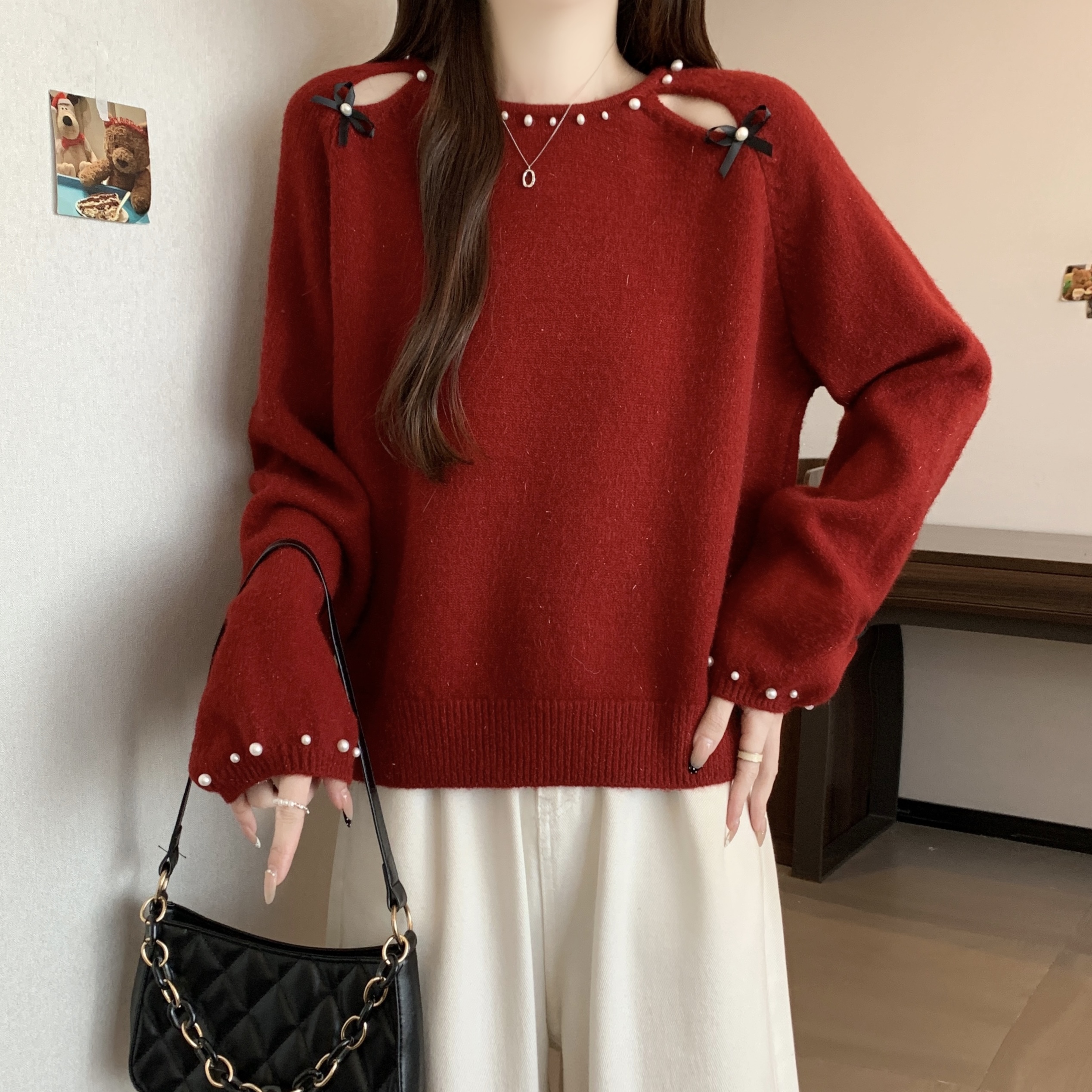 실사 빅 사이즈 단색 배트윙 소매 풀오버 스웨터 여자 가을 겨울 루즈핏 보트넥 느긋한 바람이 아닙니다. 규칙 맨위