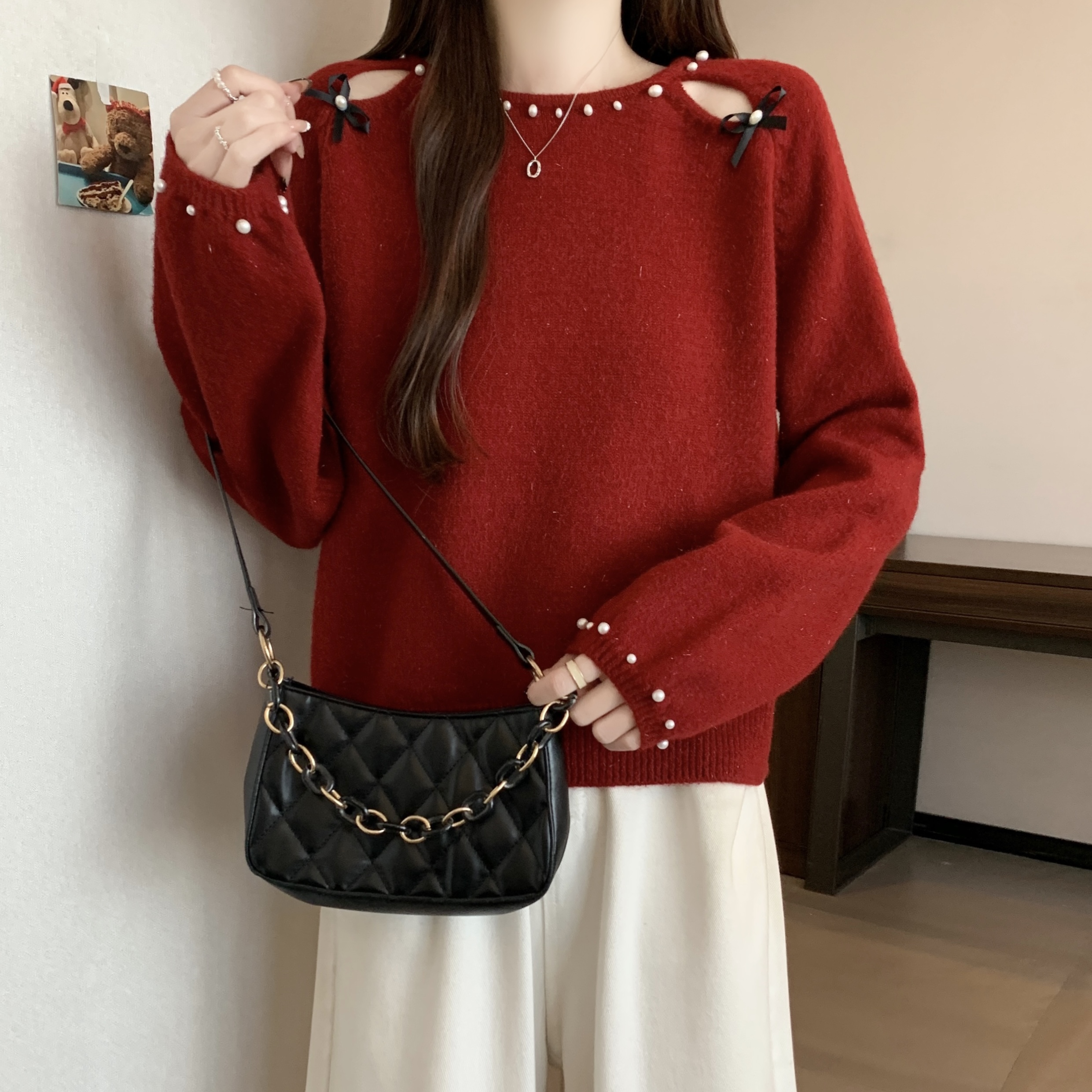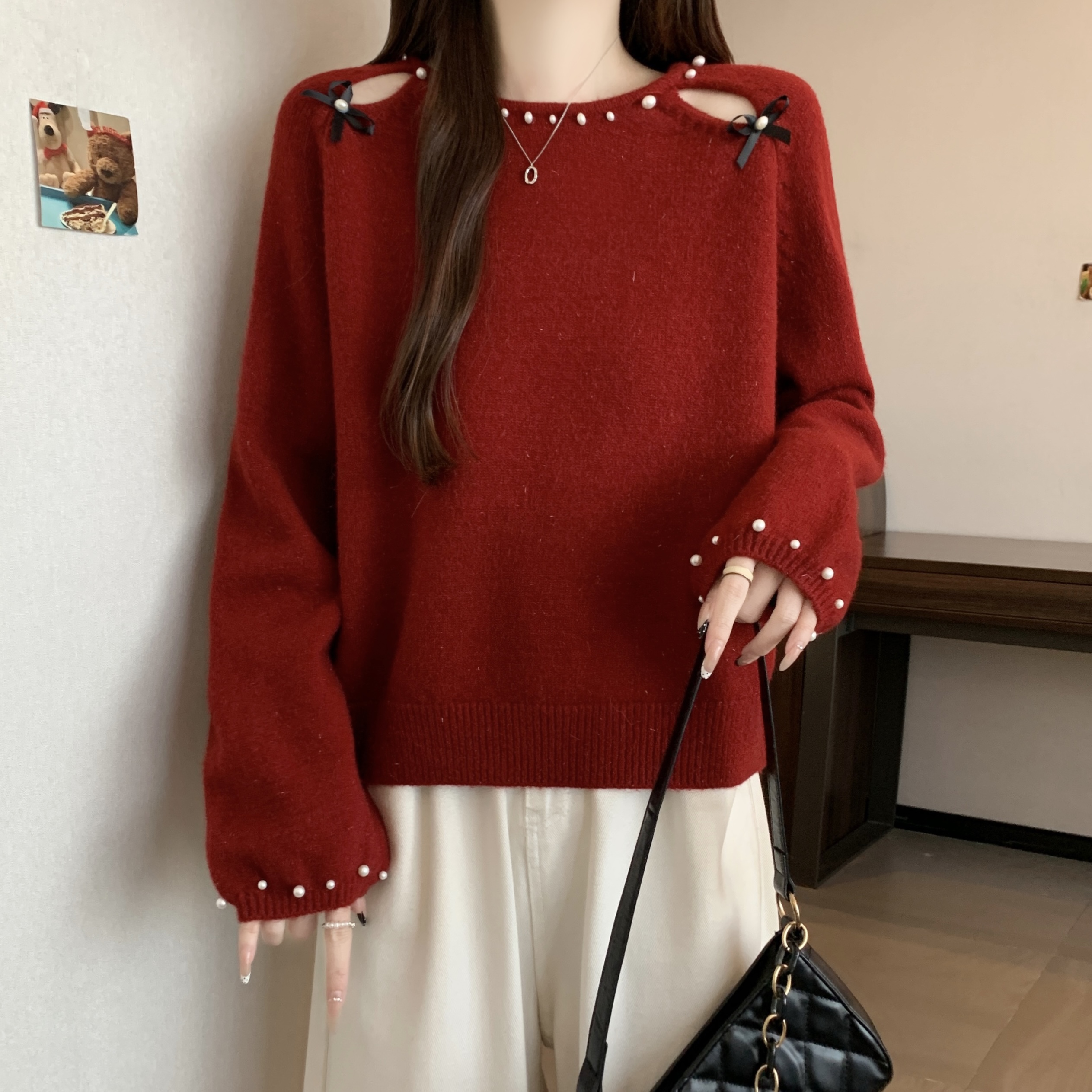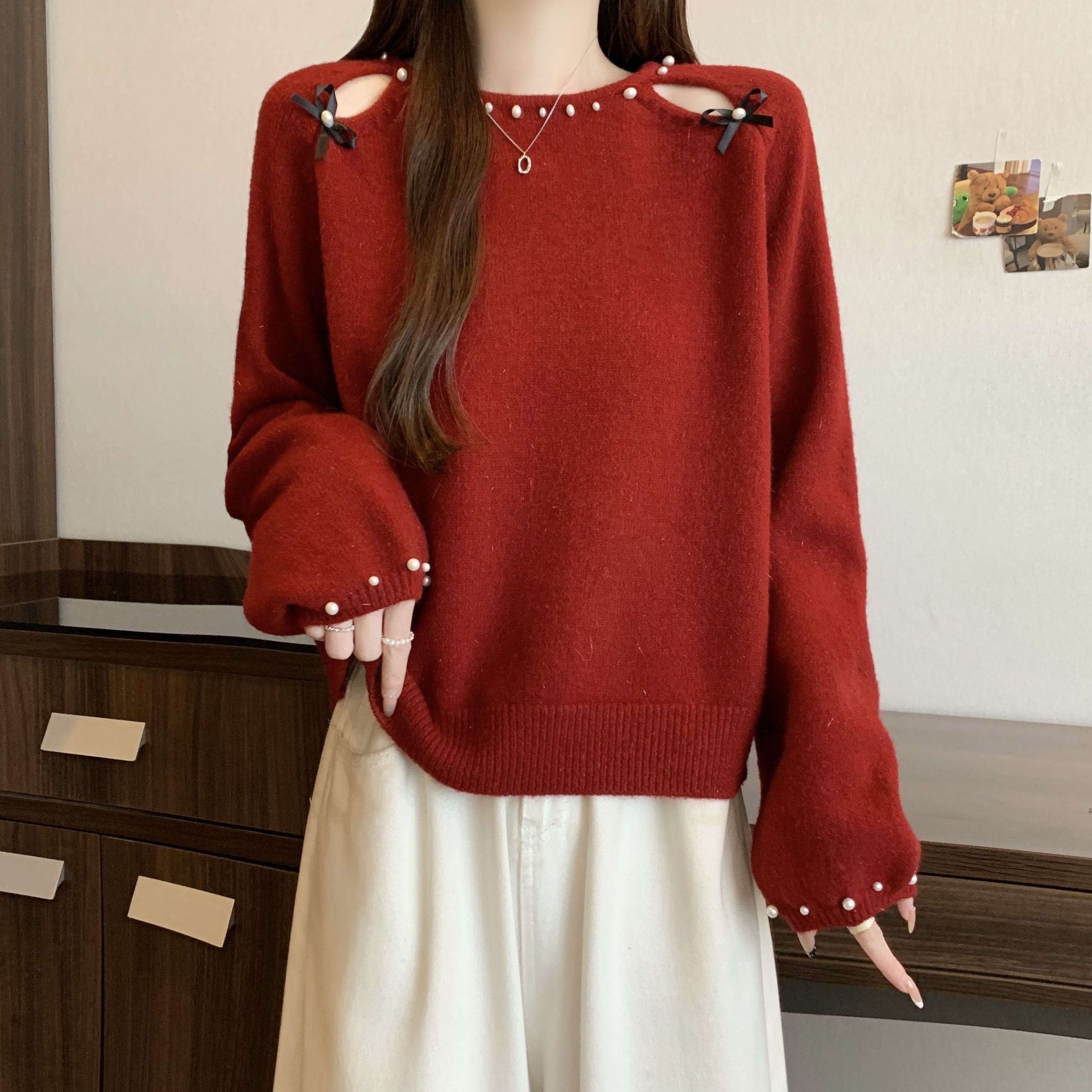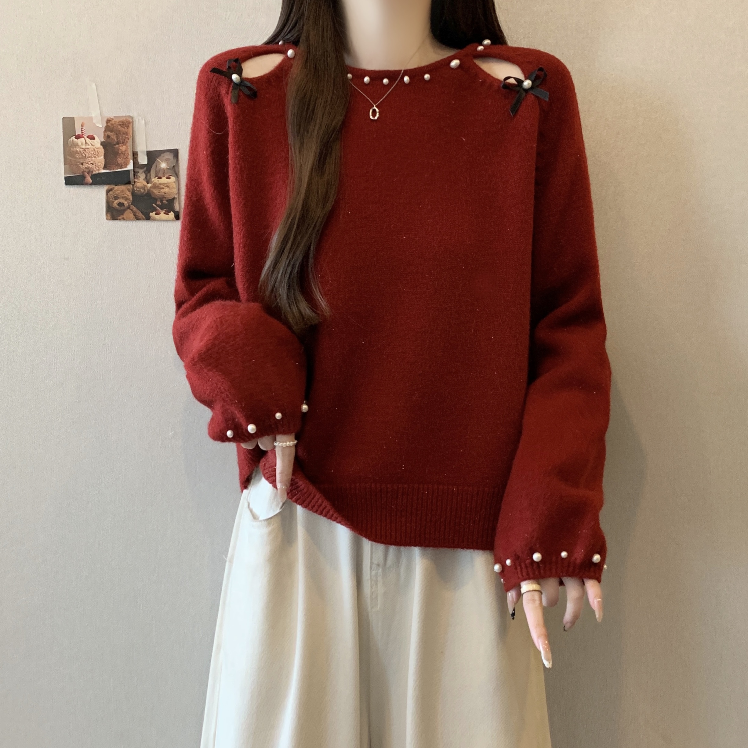 실사 빅 사이즈 단색 배트윙 소매 풀오버 스웨터 여자 가을 겨울 루즈핏 보트넥 느긋한 바람이 아닙니다. 규칙 맨위
