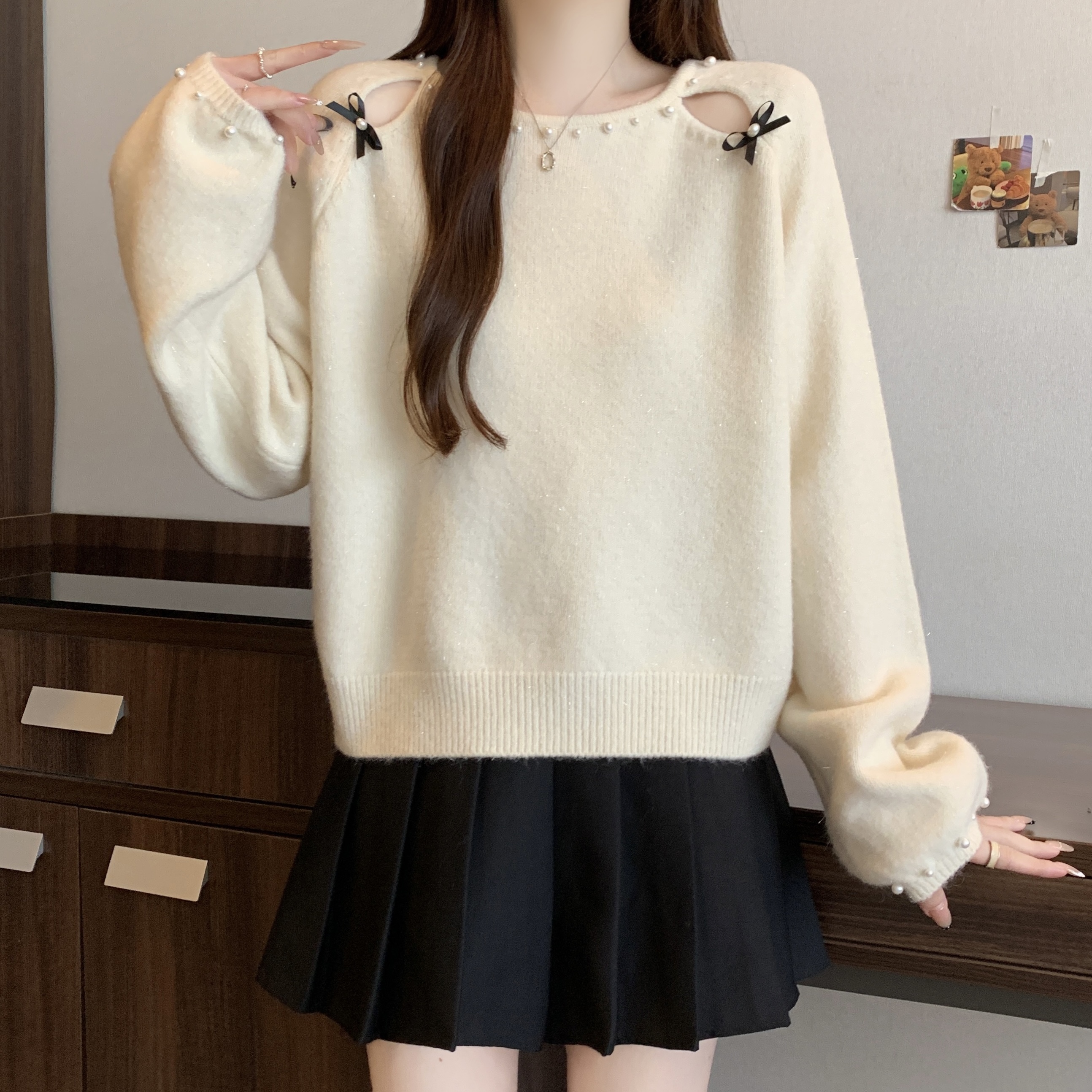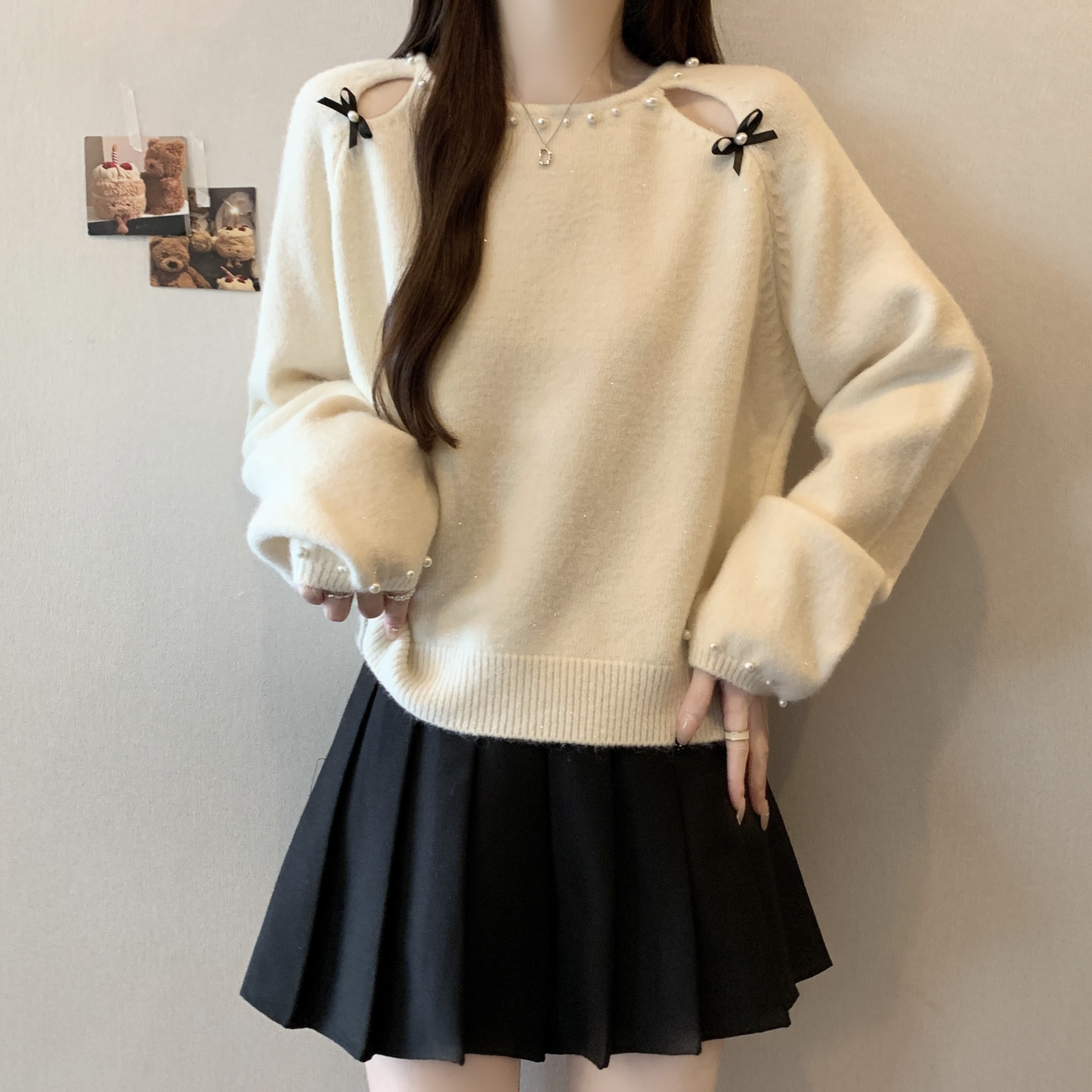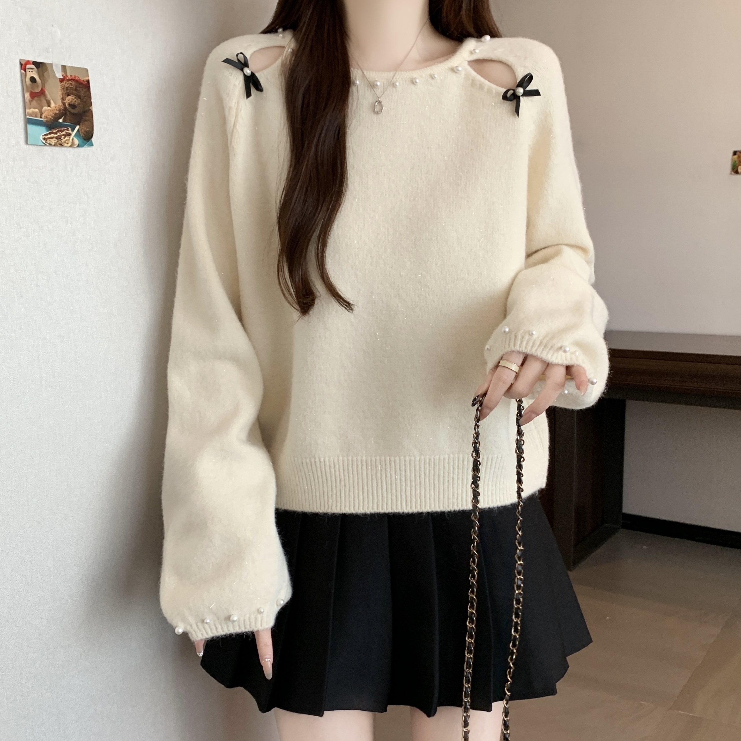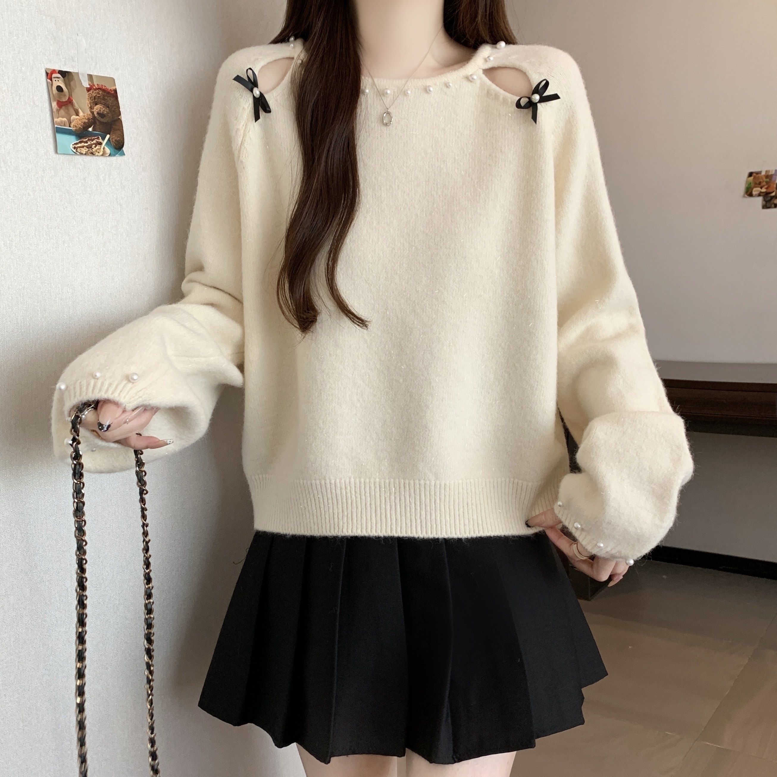실사 2025 가을 겨울 새로운 한 부서 느긋한 바람 터틀넥 목도리 홀로우 아웃 숄 니트 스웨터 투피스 세트