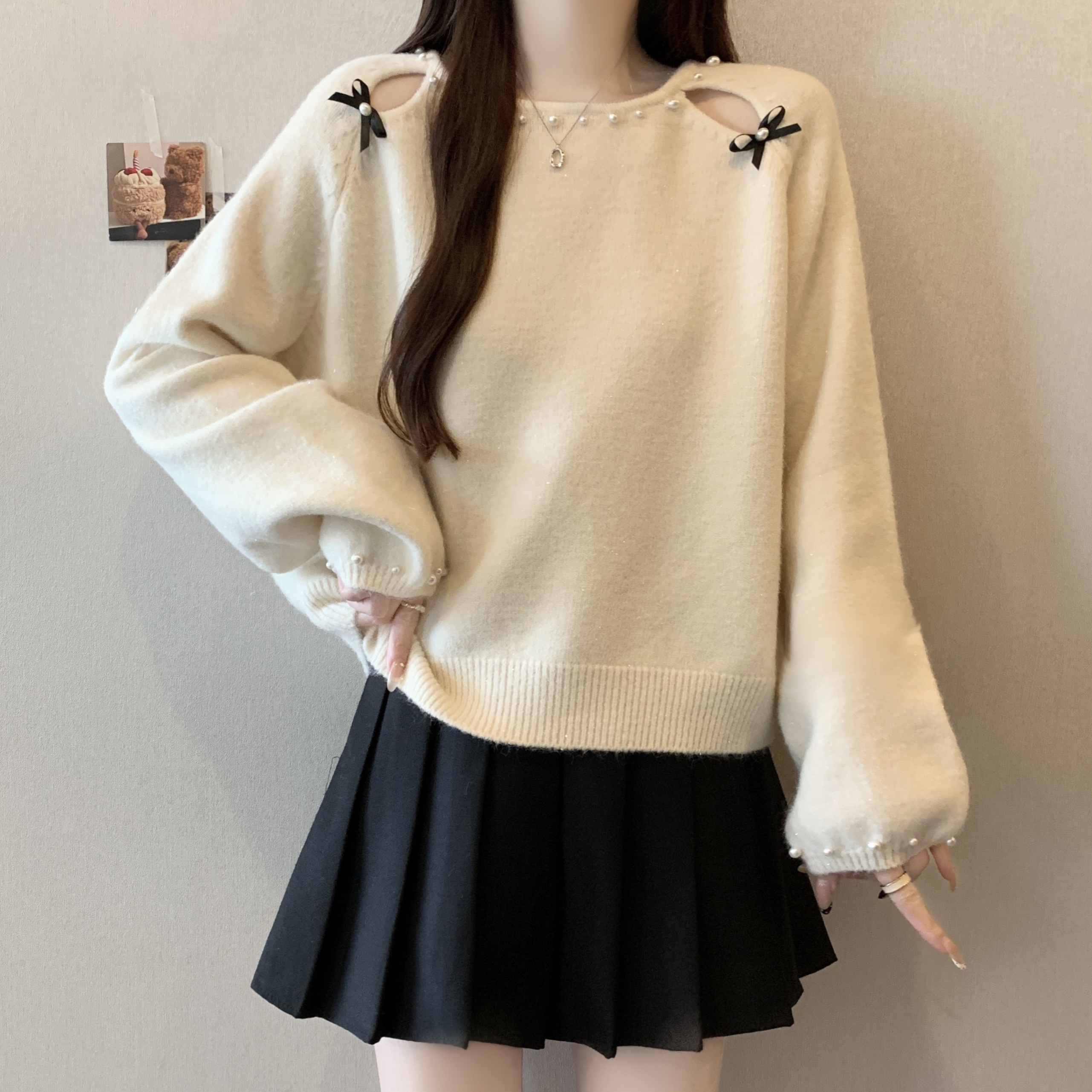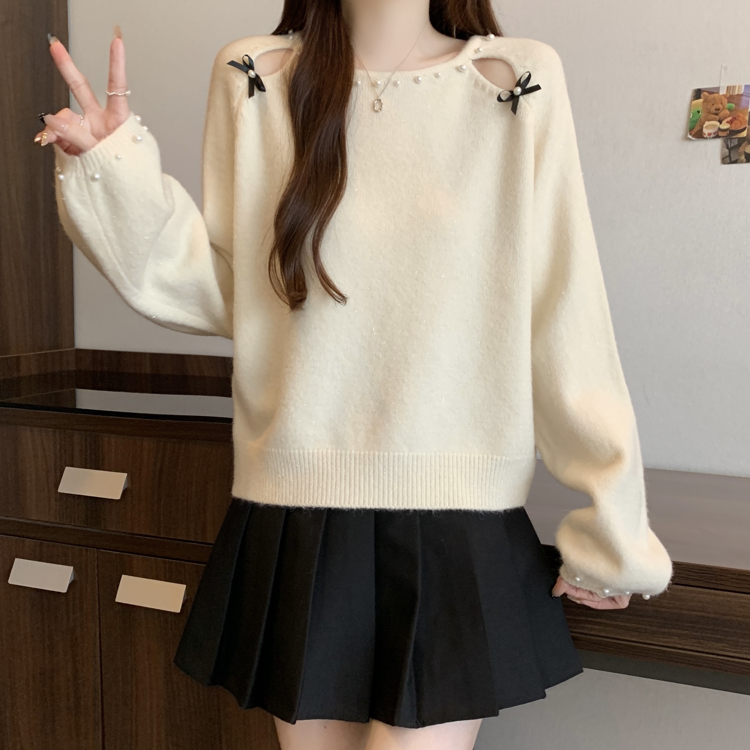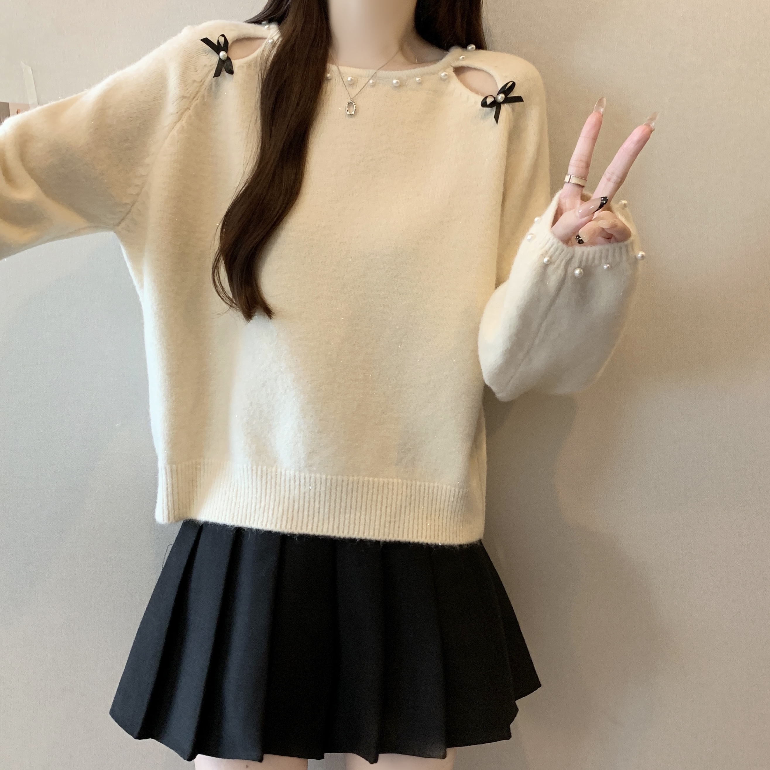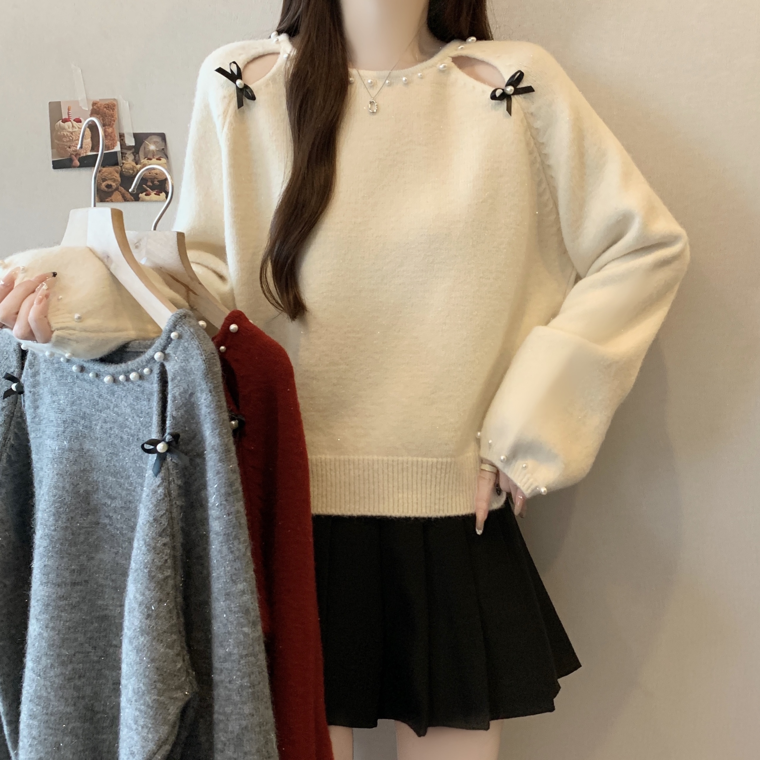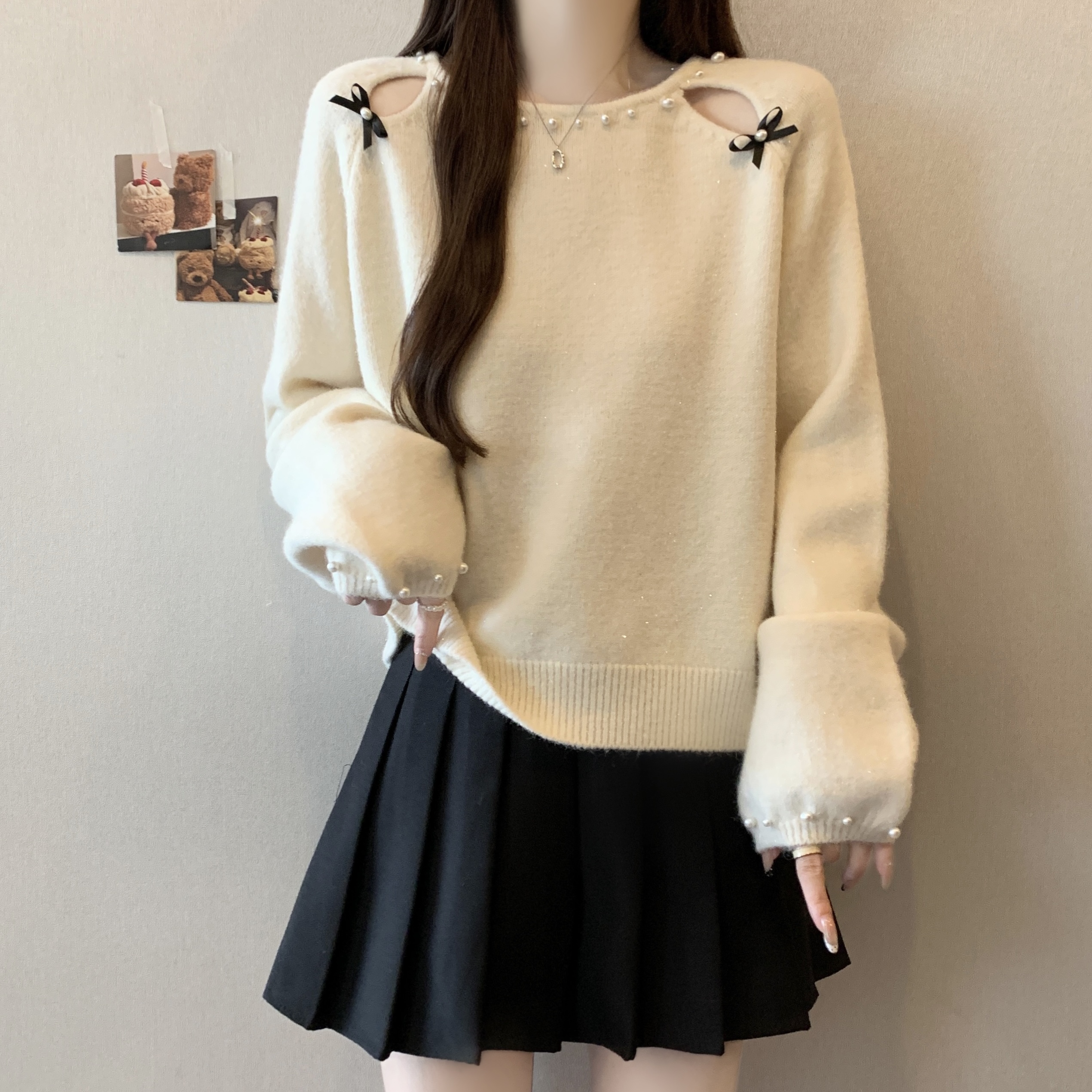 실사 2025 가을 겨울 새로운 한 부서 느긋한 바람 터틀넥 목도리 홀로우 아웃 숄 니트 스웨터 투피스 세트