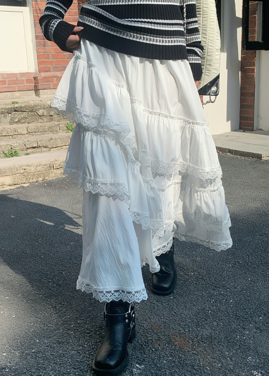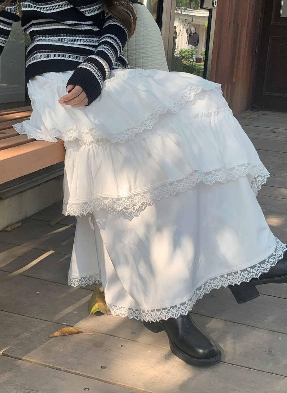 정가 실사 새로운 달콤한 차가운 바람 화이트 레이스 반신 스커트 프릴 큰 진자 롱 스커트