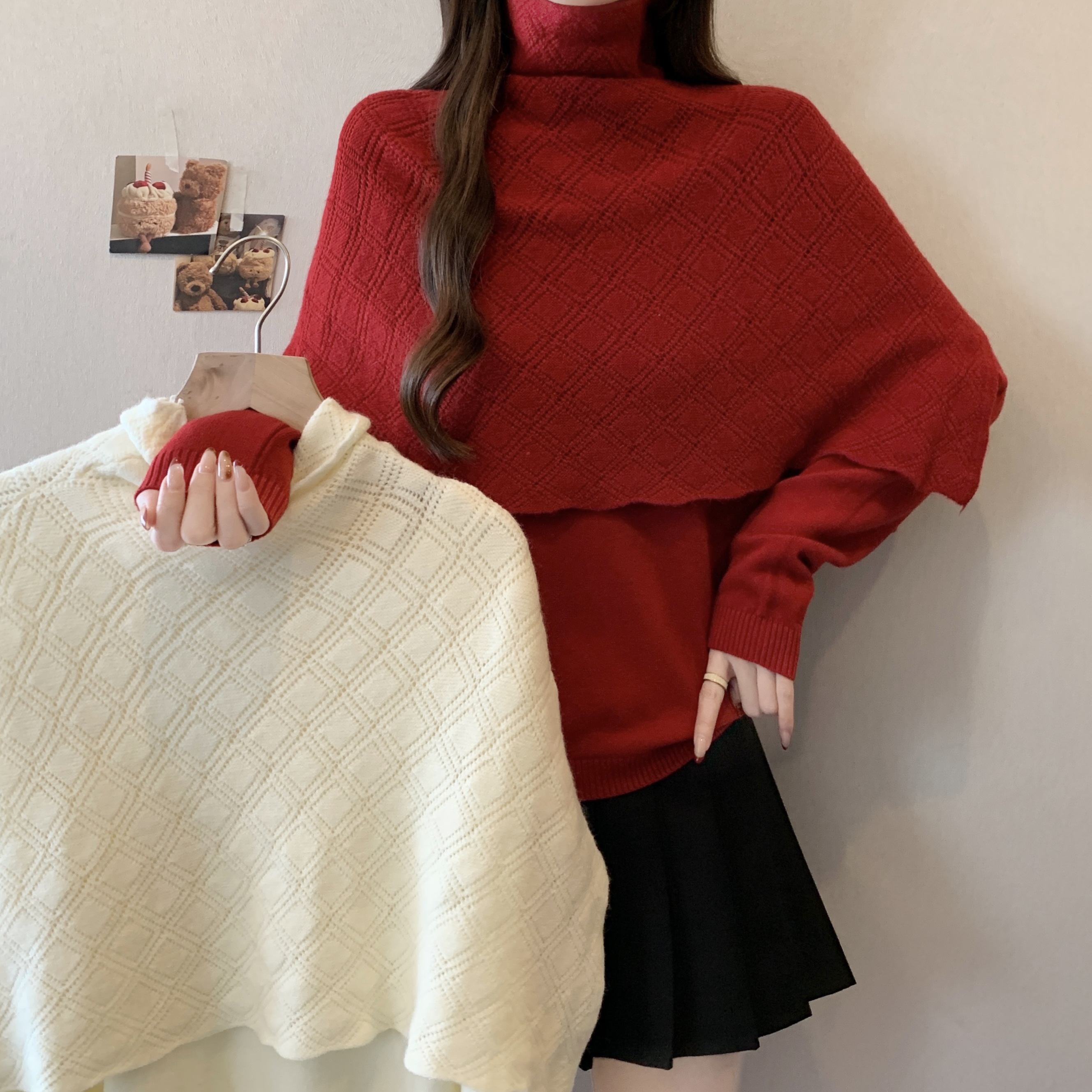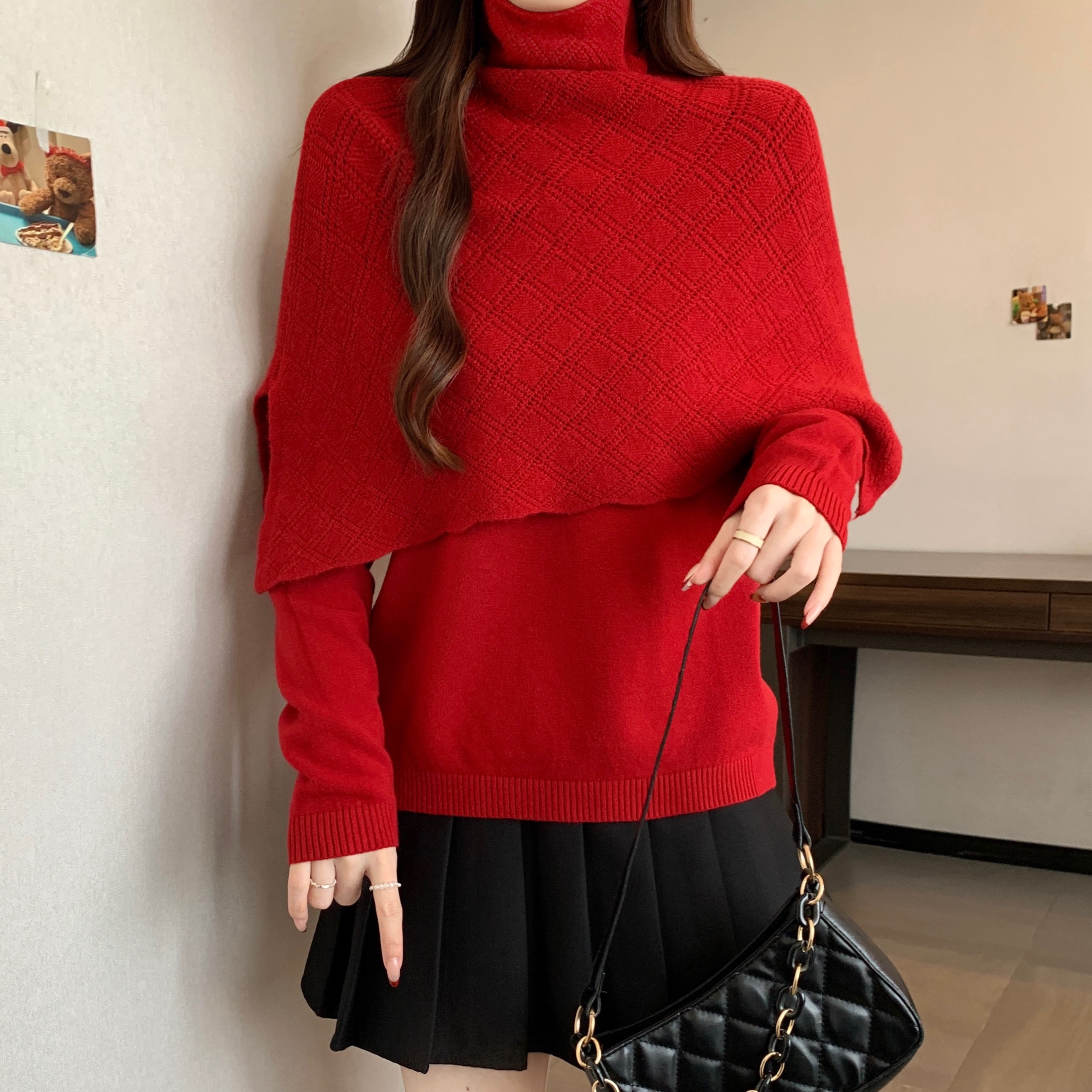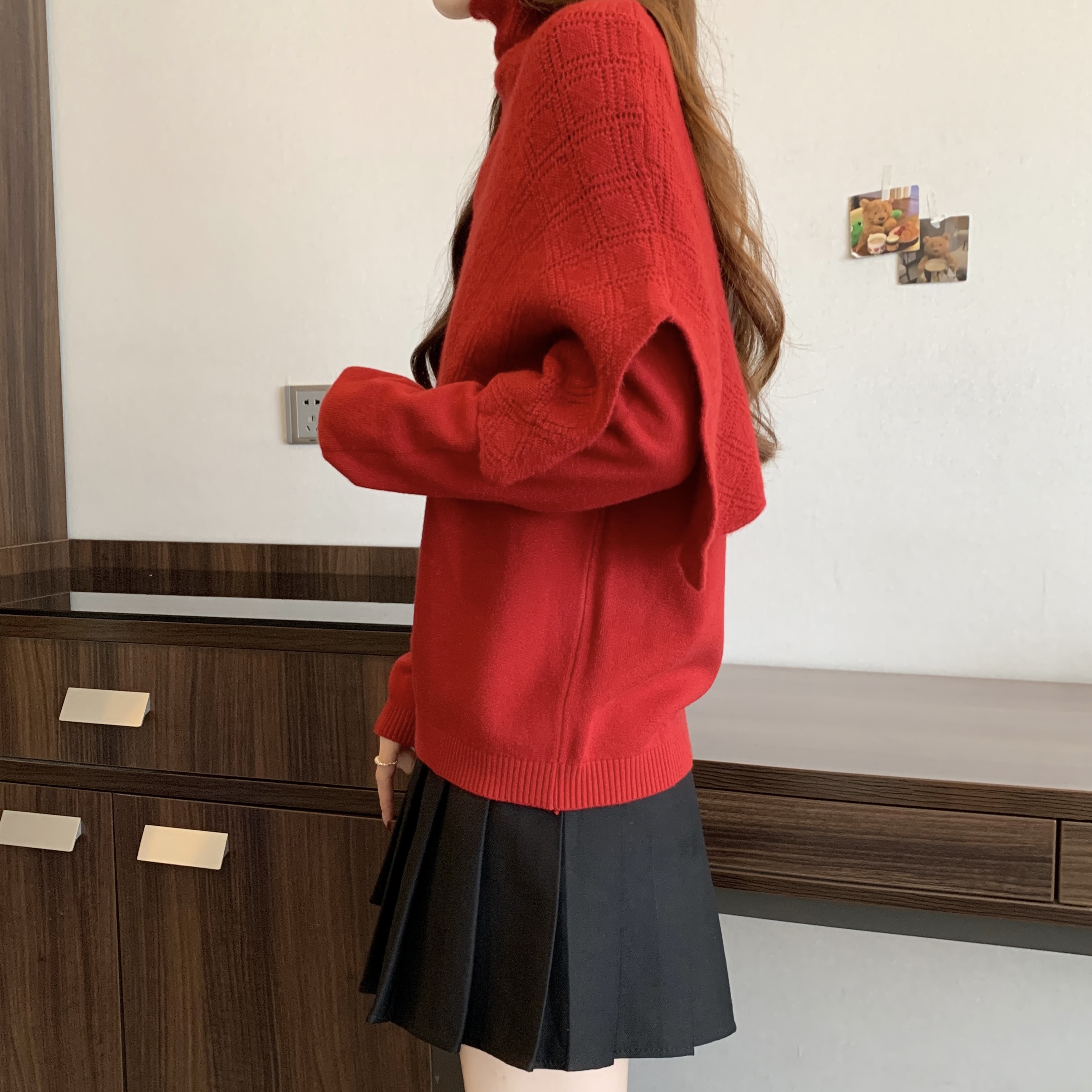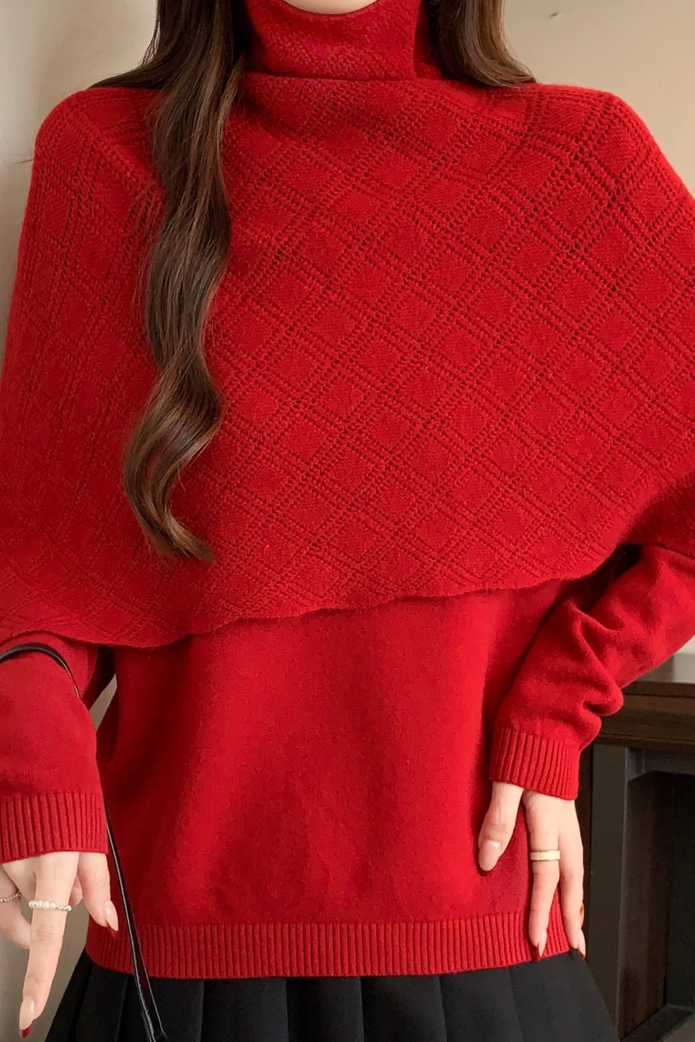 실사 2025 가을 겨울 새로운 반하이넥 레이스 다용도 니트 카디건 여성 빅 사이즈 루즈핏 슬림해 보이는 맨위