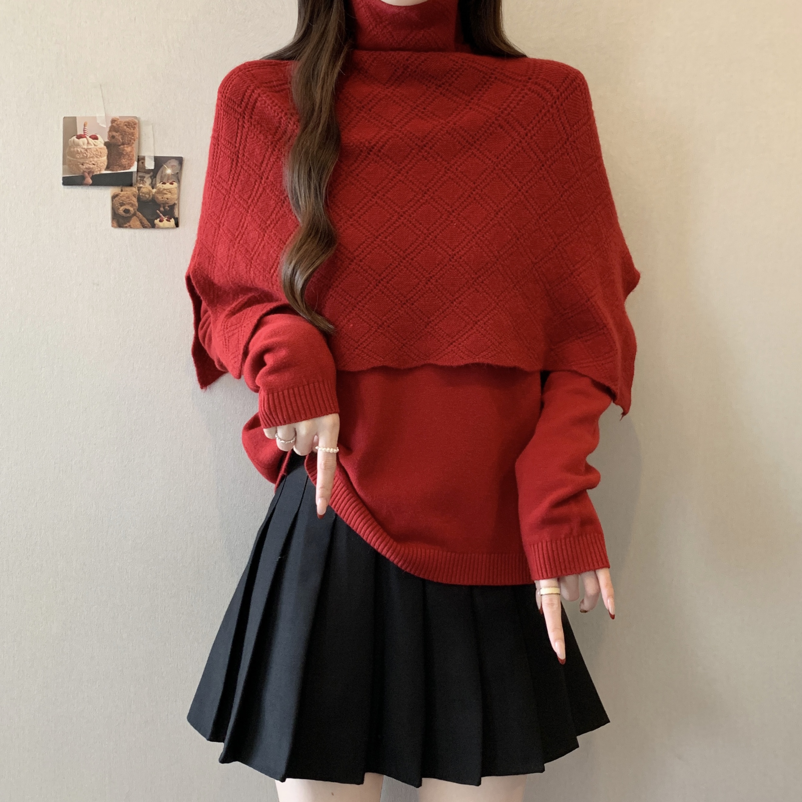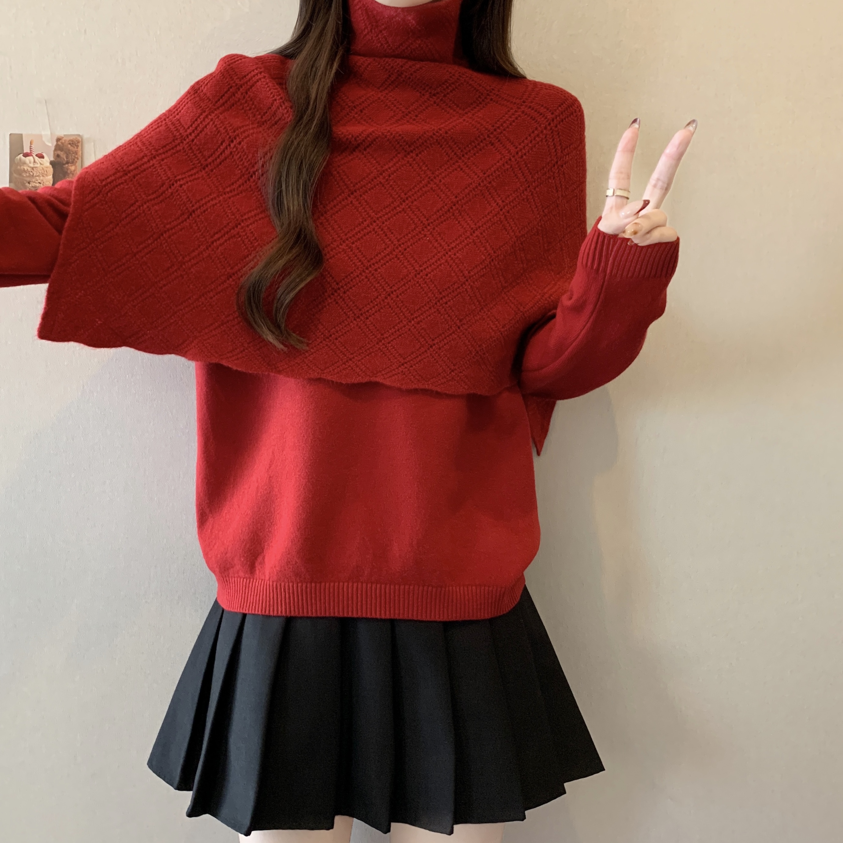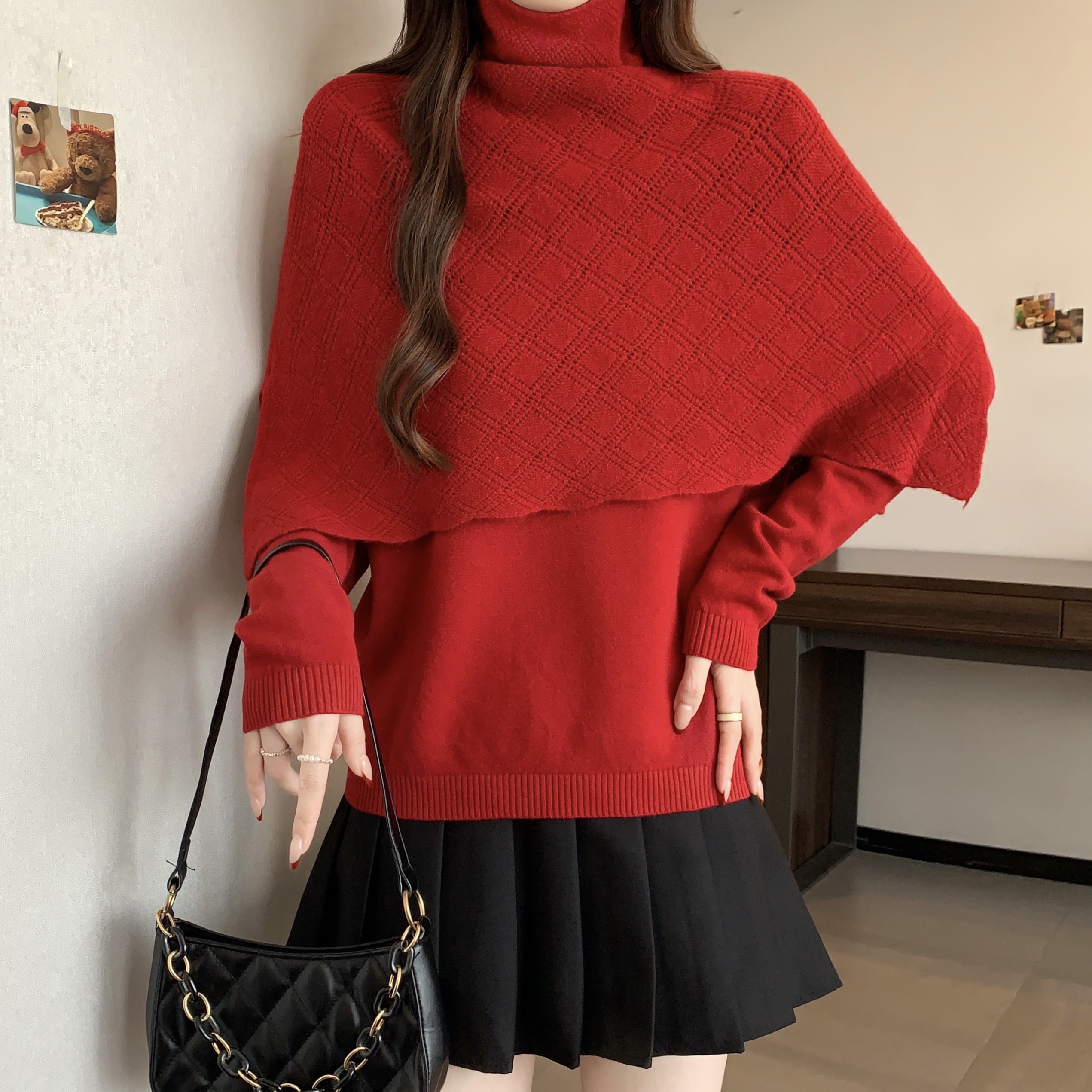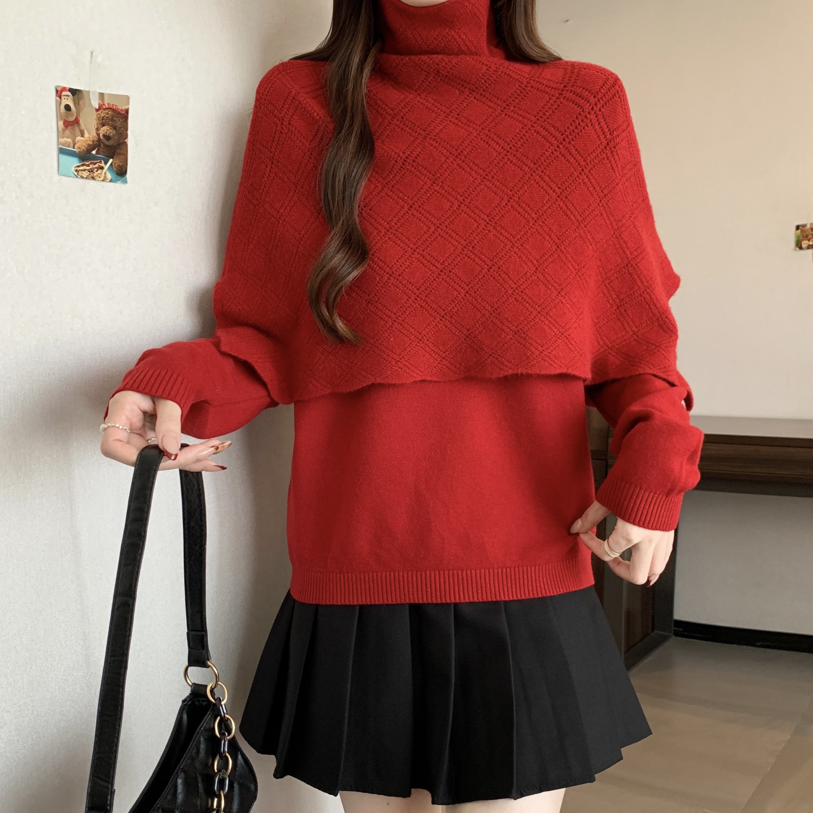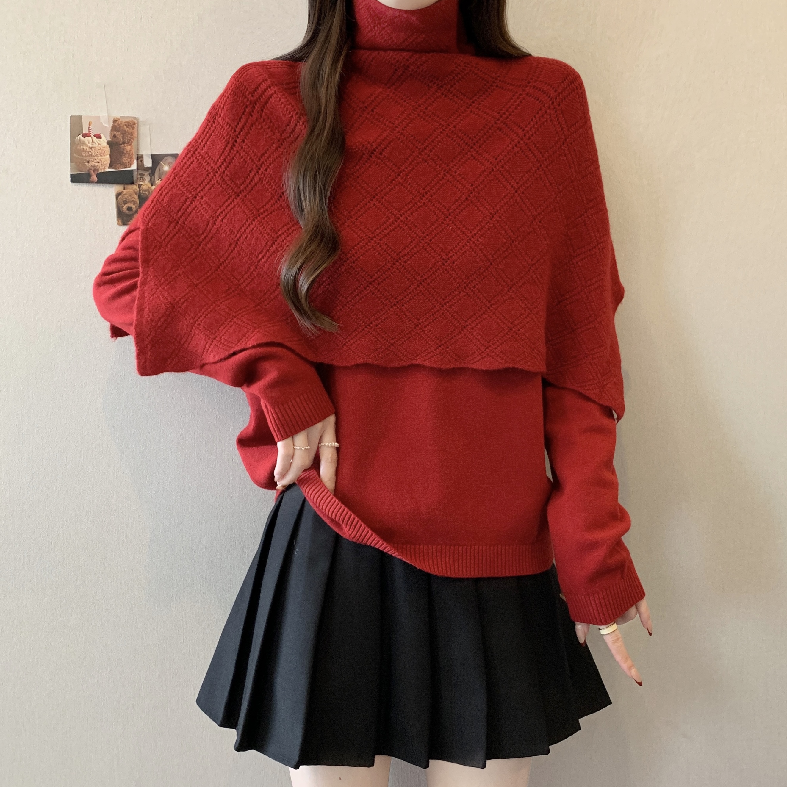 실사 2025 가을 겨울 새로운 반하이넥 레이스 다용도 니트 카디건 여성 빅 사이즈 루즈핏 슬림해 보이는 맨위