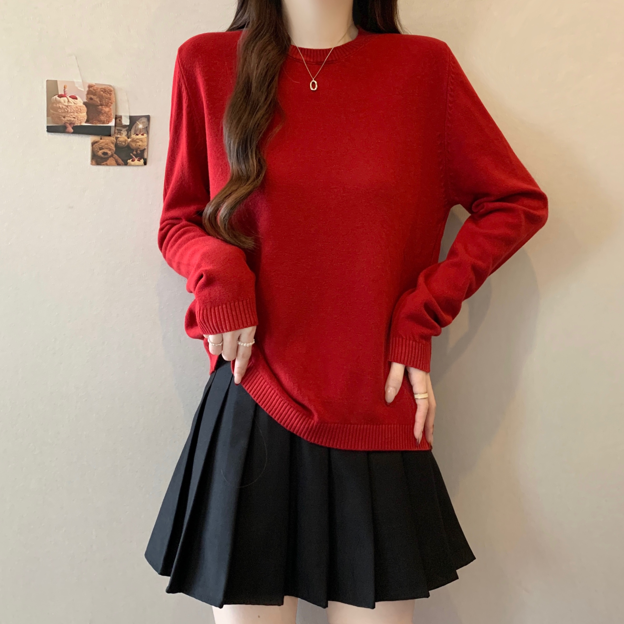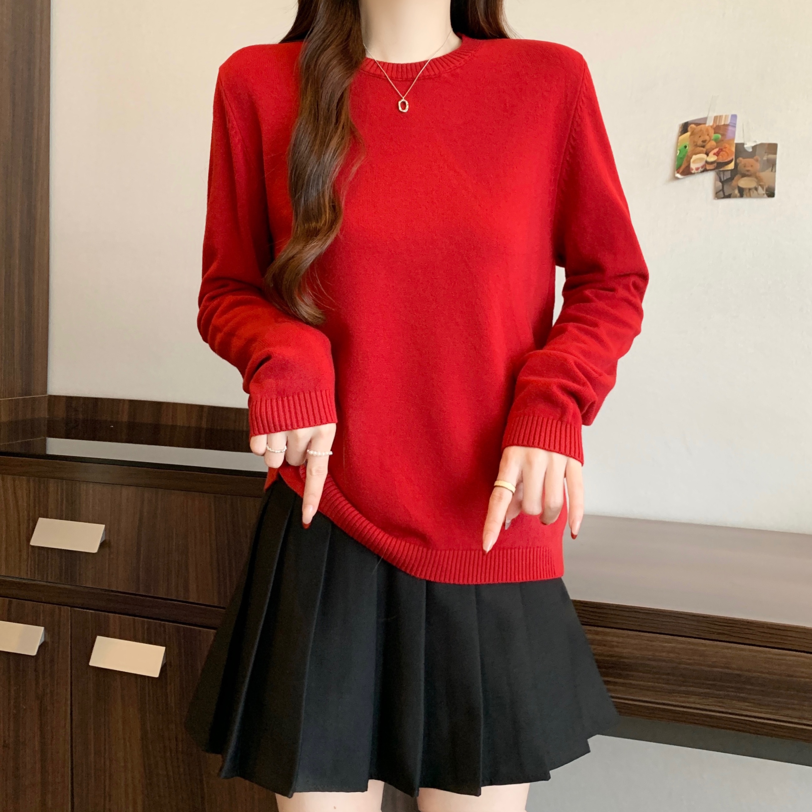 실사 빅 사이즈 단색 배트윙 소매 풀오버 스웨터 여자 가을 겨울 루즈핏 보트넥 느긋한 바람이 아닙니다. 규칙 맨위
